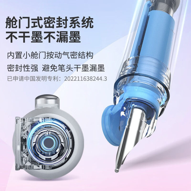 点石按动钢笔小舱门时空舱ef f尖包尖可换墨囊蓝黑色三年级学生用可擦按压式钢笔正姿练字字帖硬笔书法DS784