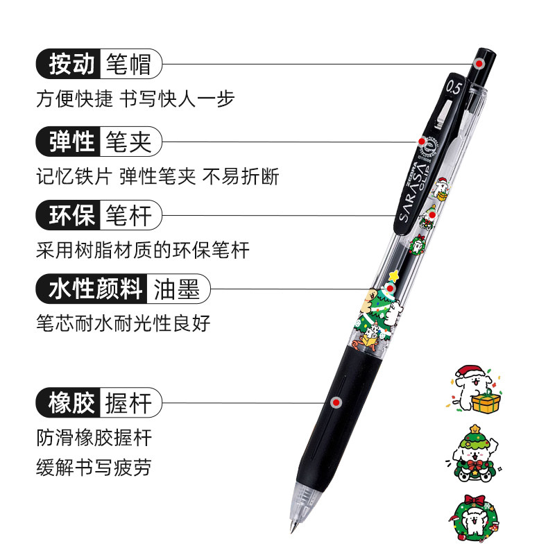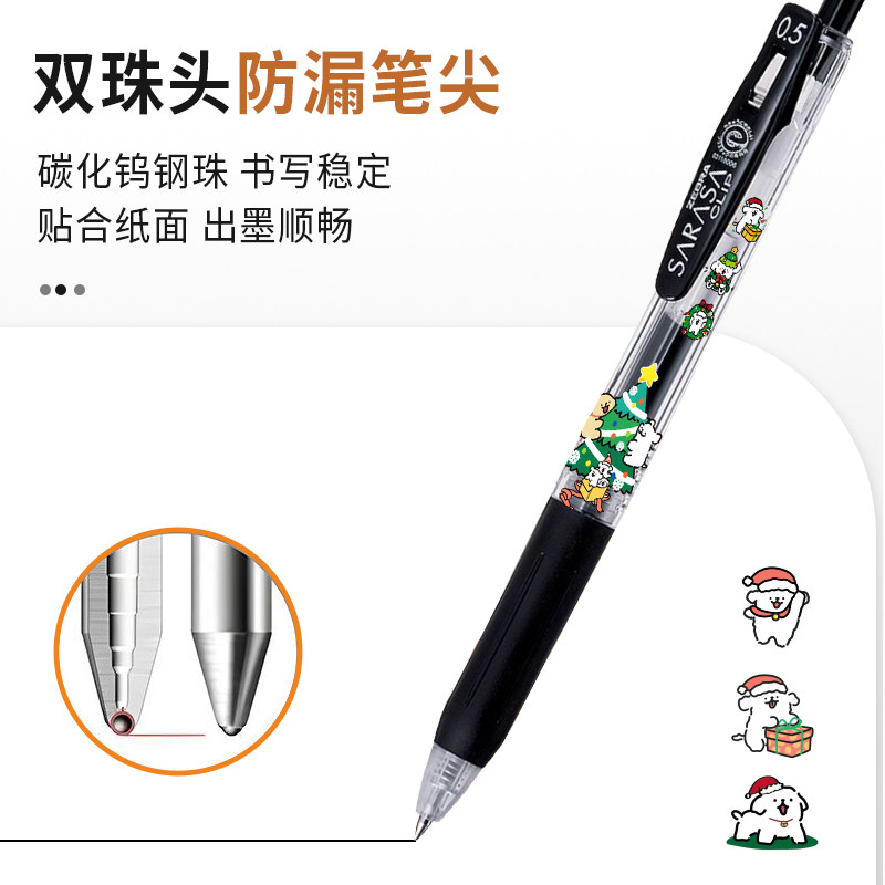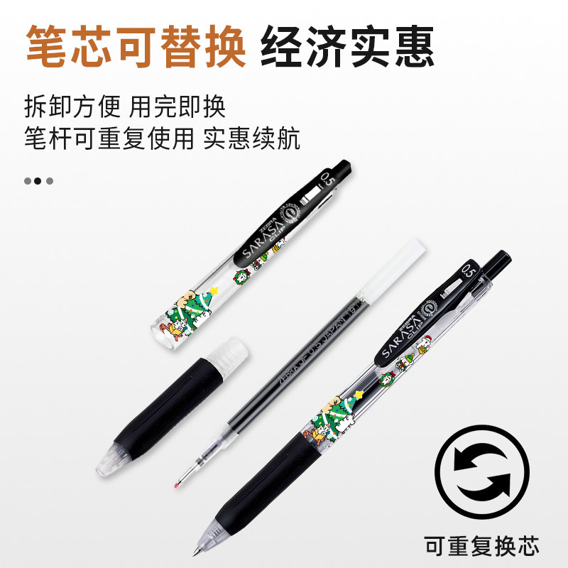 日本ZEBRA斑马JJ15线条小狗浓墨按动大容量中性笔圣诞系列限定款0.5学生用刷题考试用笔DIY款圣诞实用礼物