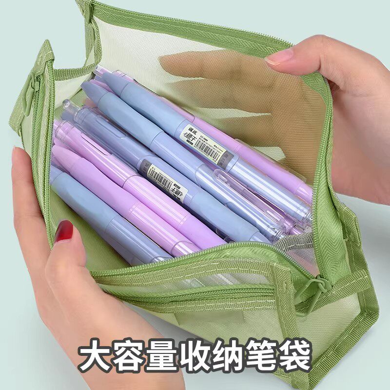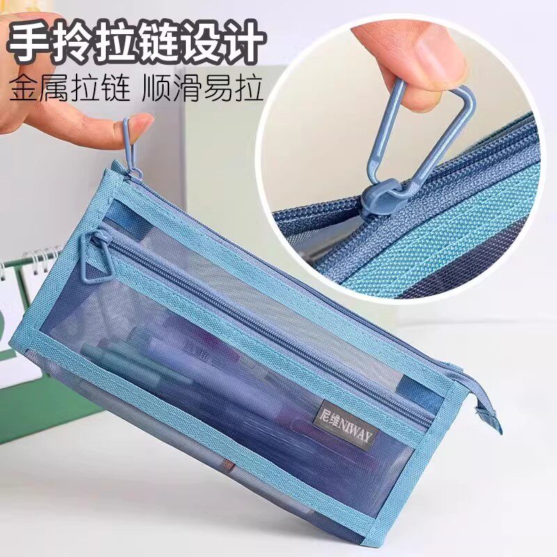 透明笔袋考试专用文具袋网纱三角学生儿童铅笔袋双层立体大容量文具盒男女孩款2026简约便携收纳袋粉色白色