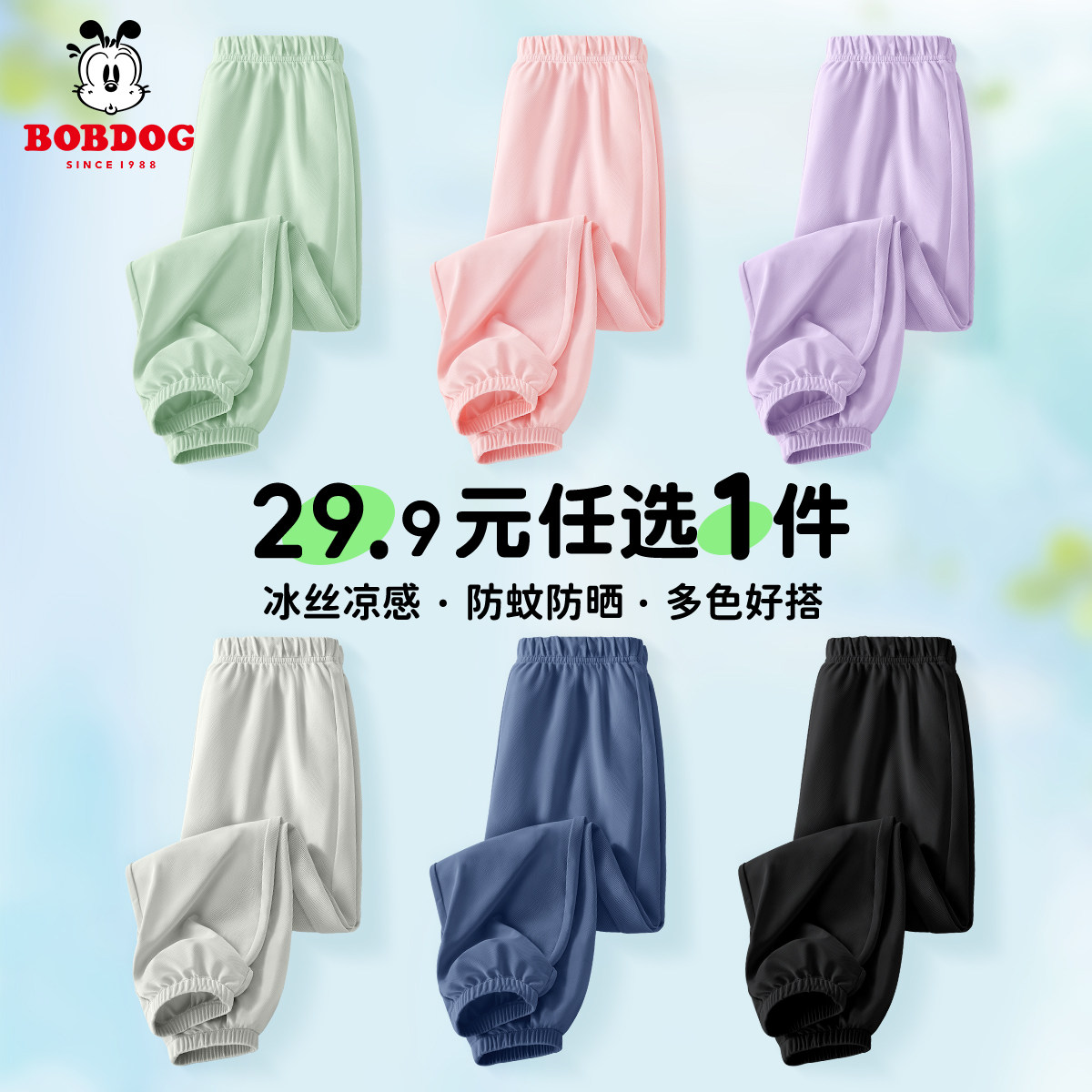 巴布豆儿童防蚊裤夏季薄款2025新款男童裤子冰丝长裤童装女童夏装
