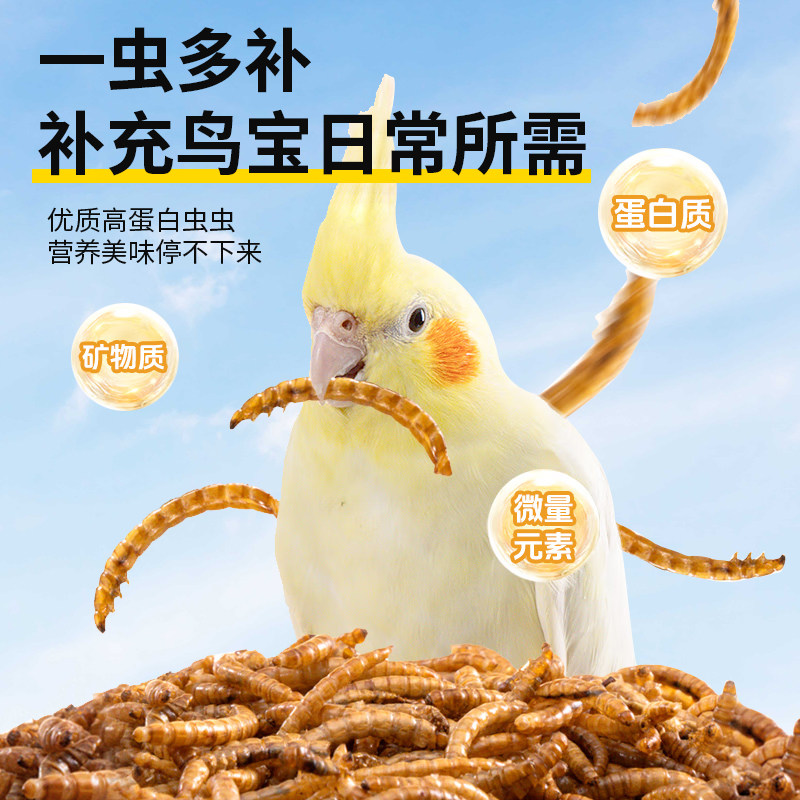 鹦鹉适用面包虫干黄粉虫干高蛋白八哥互动零食无盐活体饲料替代品