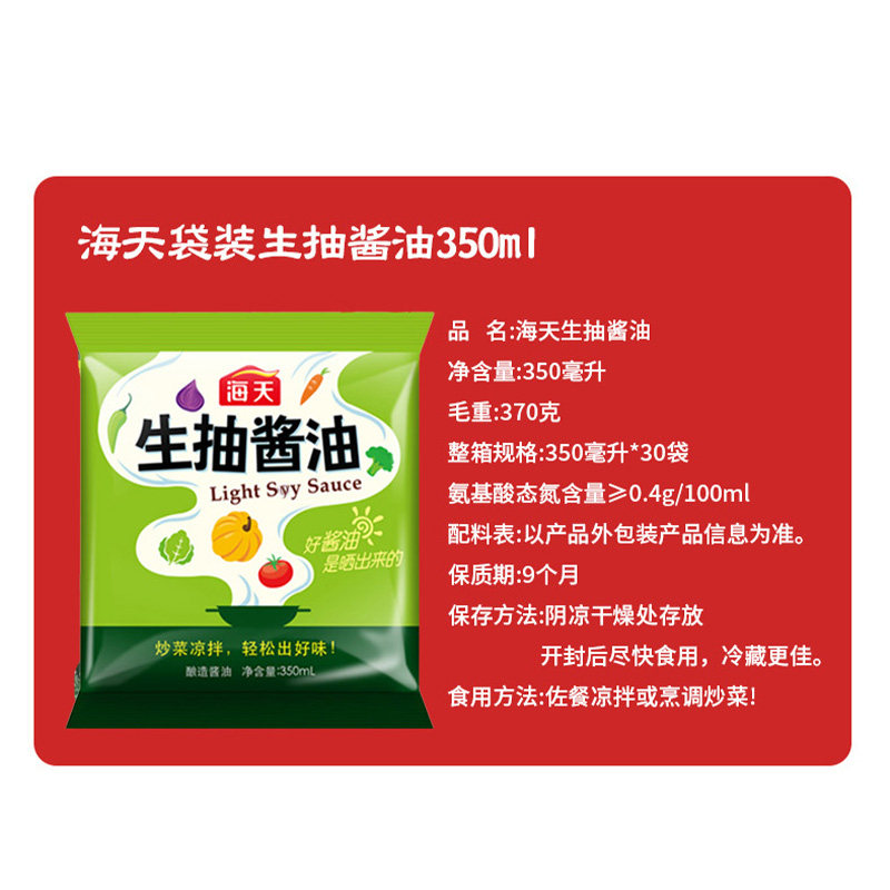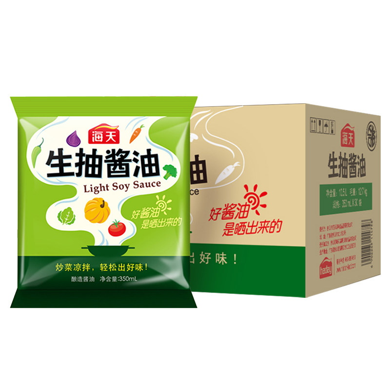 海天生抽酱油袋装350ml家用烹饪炒菜调味品火锅蘸料黄豆酿造