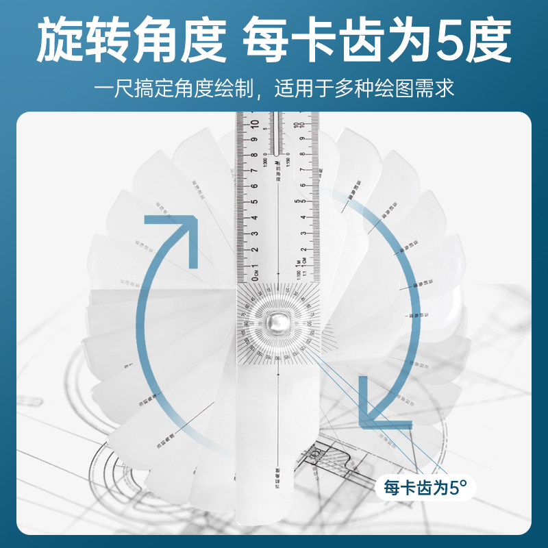 旋转多功能丁字尺制图专用直尺绘图有机t型尺子t字尺60cm长尺小学生文具土木机械工程多功能玻璃尺