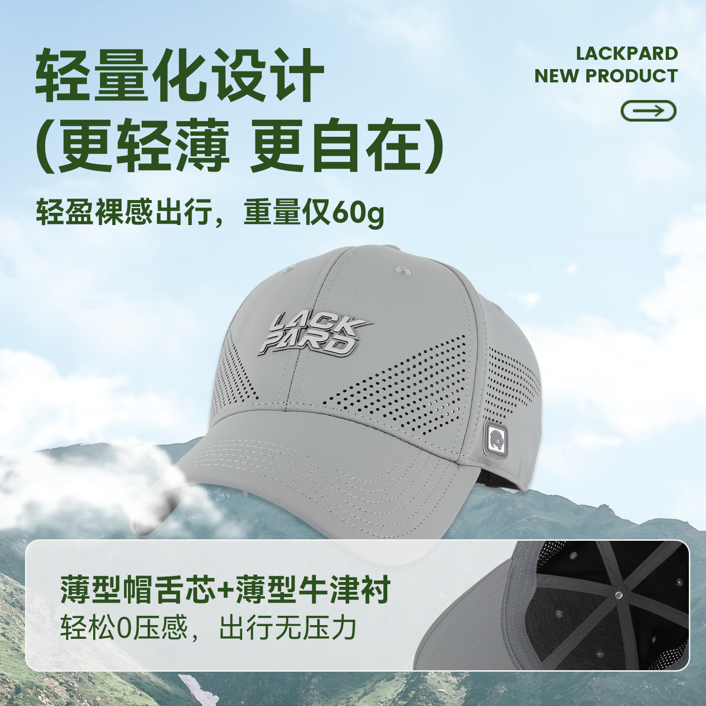 lackpard帽子速干棒球帽户外运动遮阳防晒帽显脸小网眼透气鸭舌帽