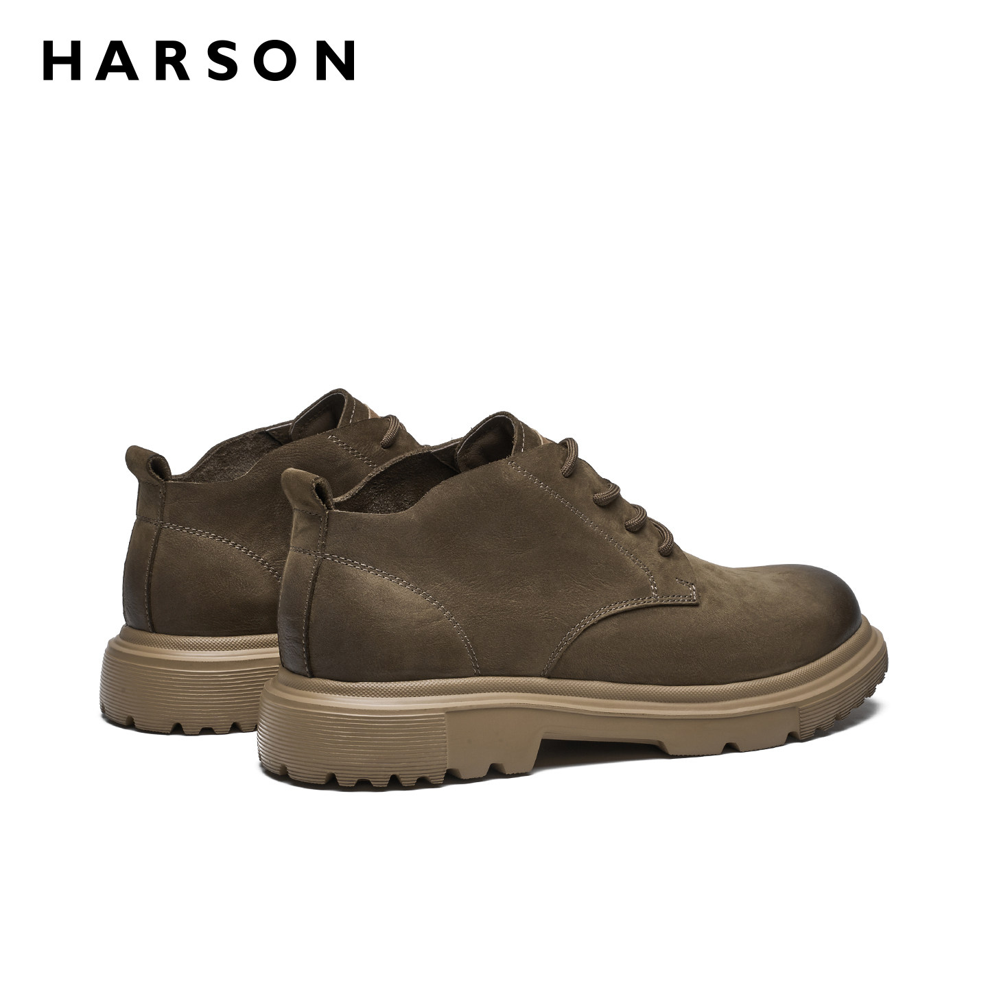 哈森春季男鞋新款时尚厚底马丁靴男款真皮大头皮鞋户外工装短靴男