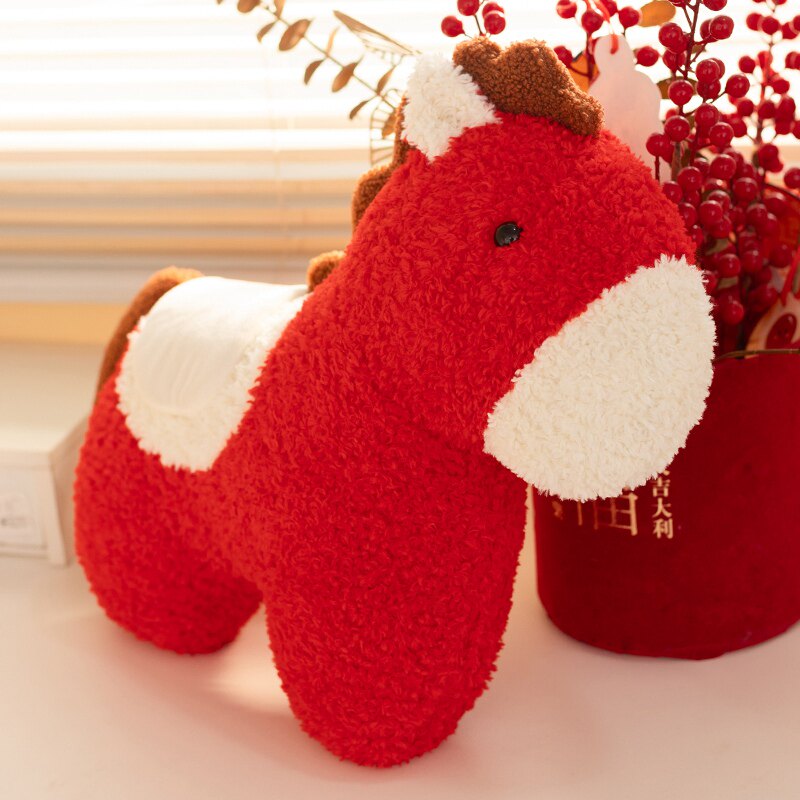马年吉祥物抱枕毛绒玩偶客厅沙发靠枕新年装饰摆件汽车载靠垫礼物