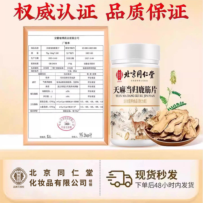 北京同仁堂御医匠天麻当归鹿筋片丸官方旗舰店正品草本萃取缓解XT