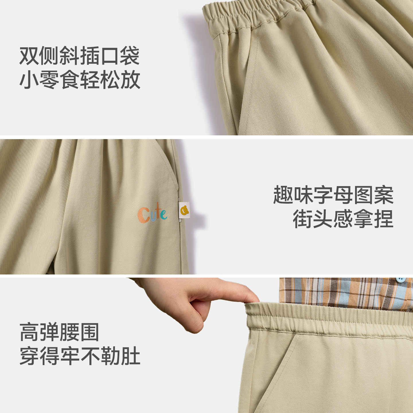 儿童裤子男童卡其色校服休闲女童西裤小学生春秋款米色加绒冬长裤