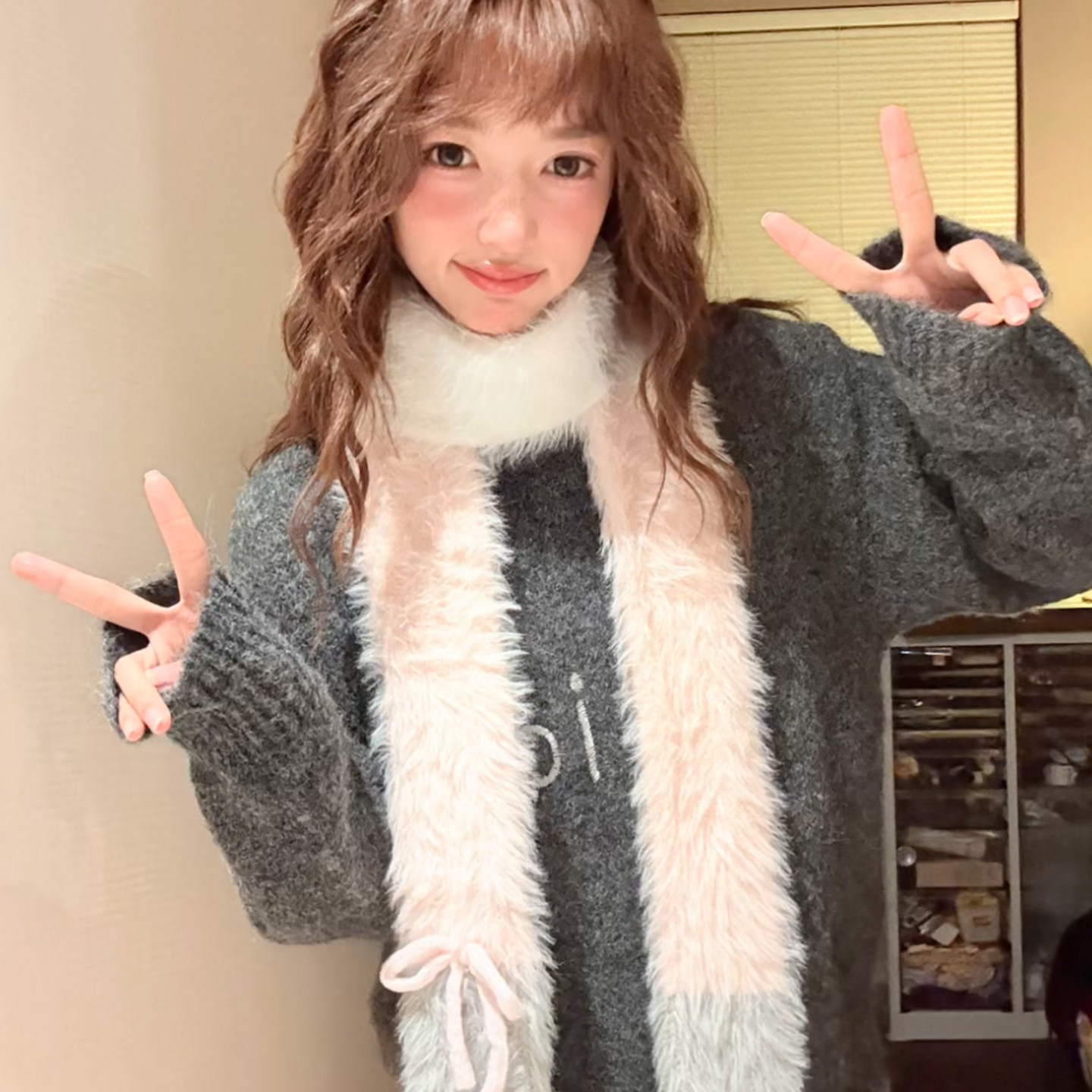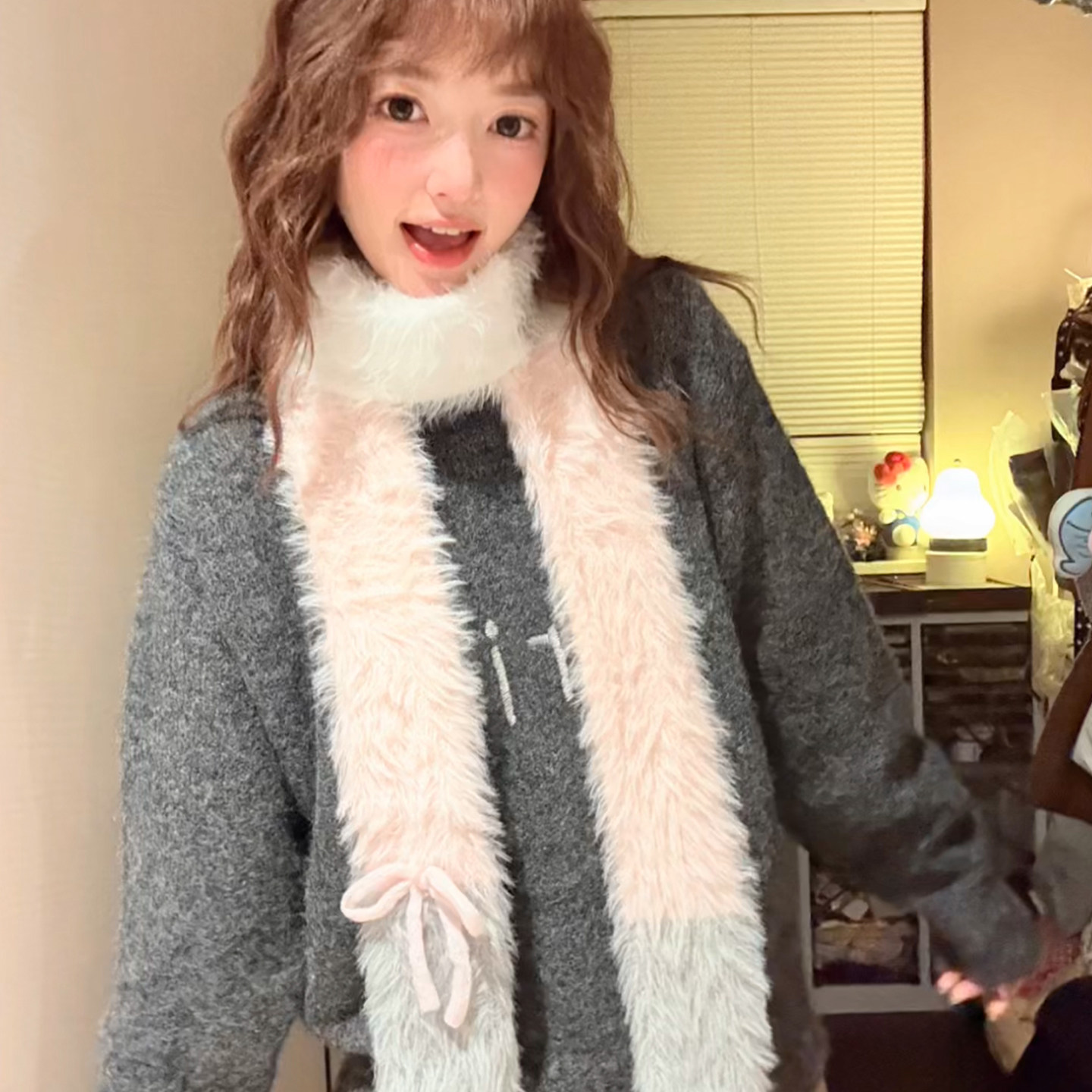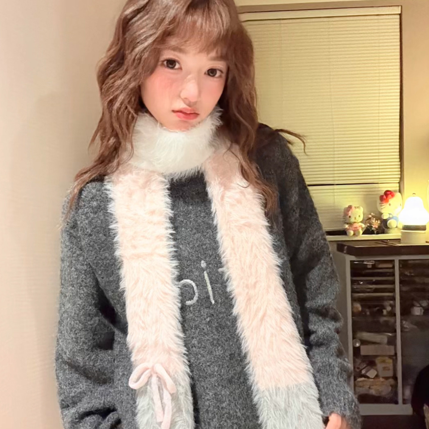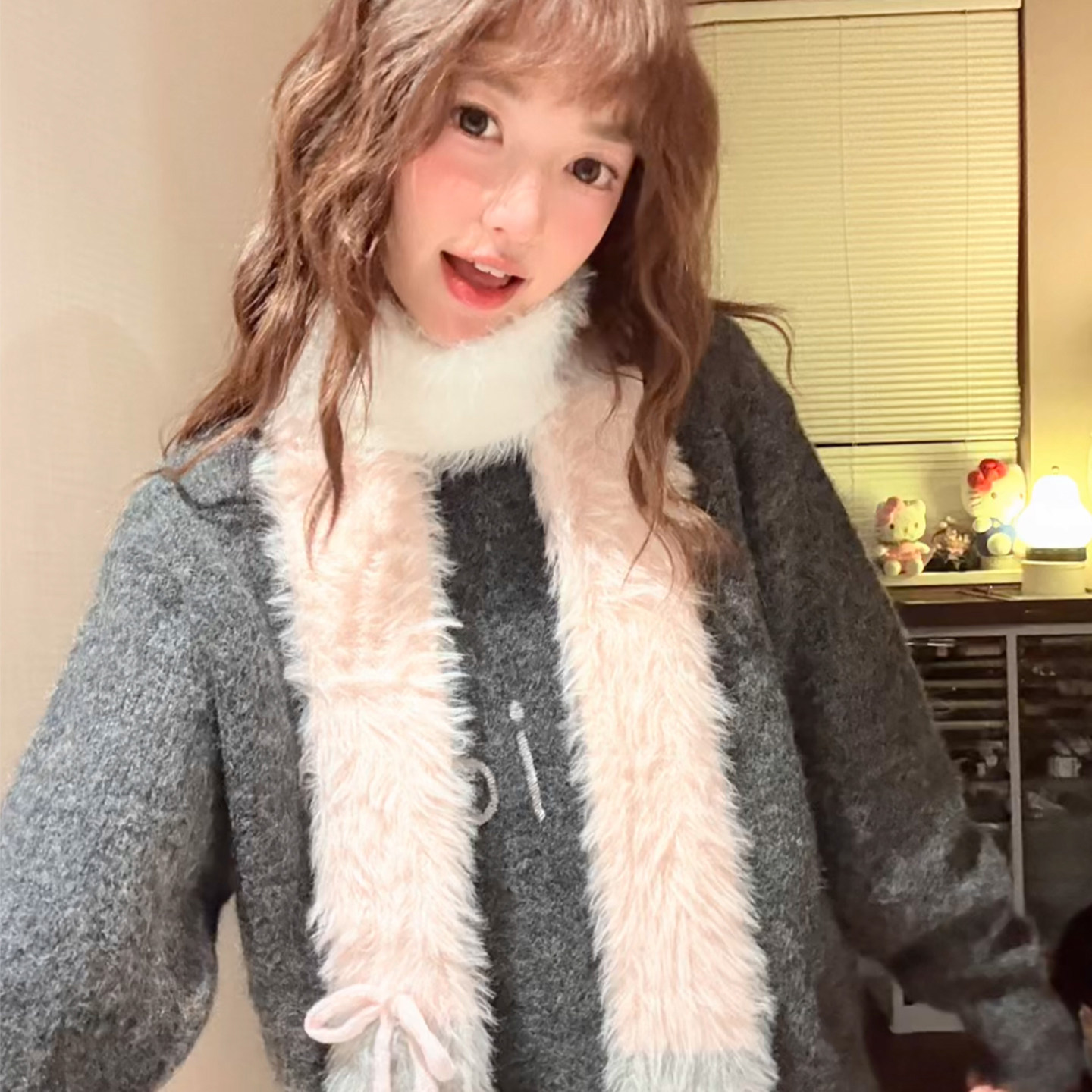 粉色韩版长条可爱毛绒针织细围巾女款2025新款冬护颈加厚保暖围脖