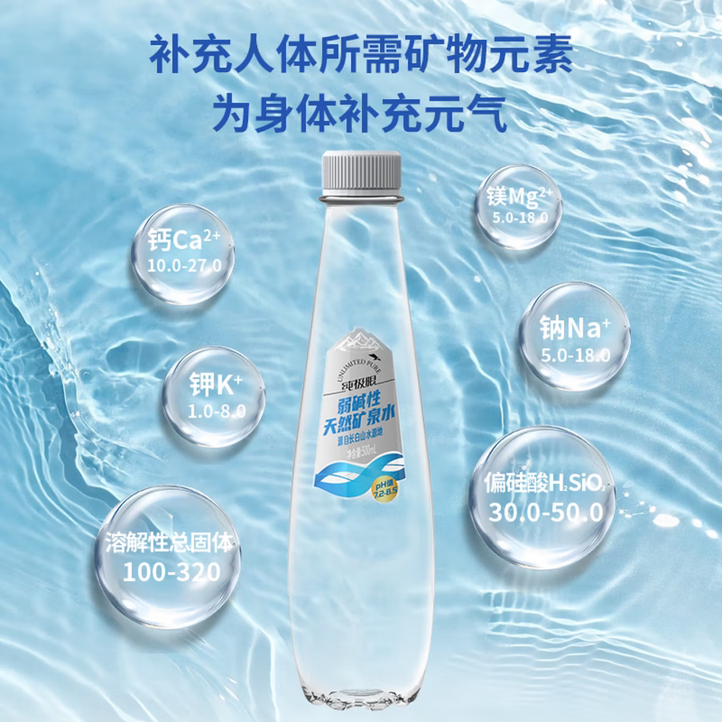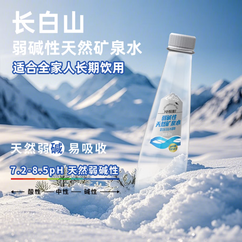 纯极限长白山弱碱性天然矿泉水家庭整箱小瓶饮用水瓶装源头元气