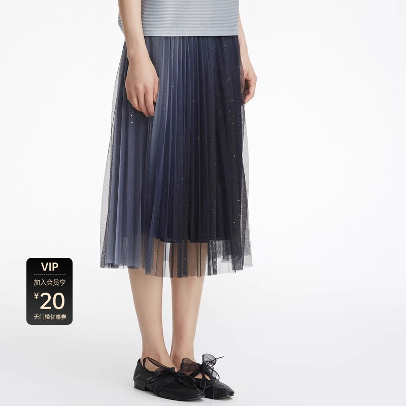 sdeer圣迪奥女夏装裙子垂坠感松紧网纱拼接渐变A字长裙S22281101