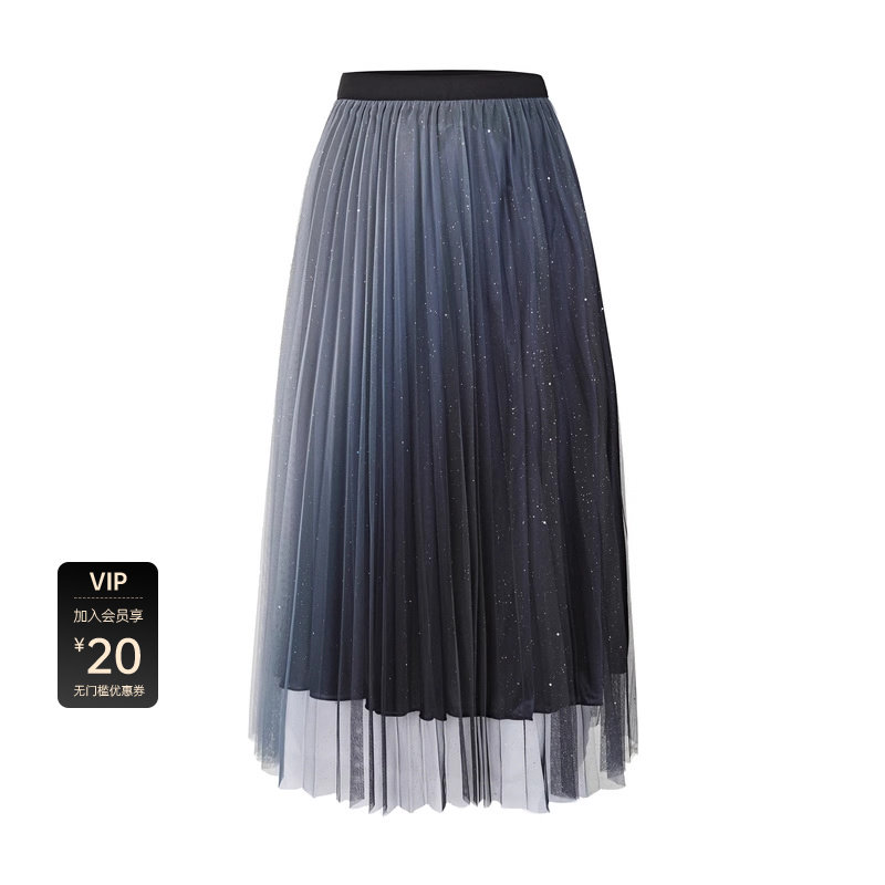 松紧长裙 网纱渐变 不规则摆