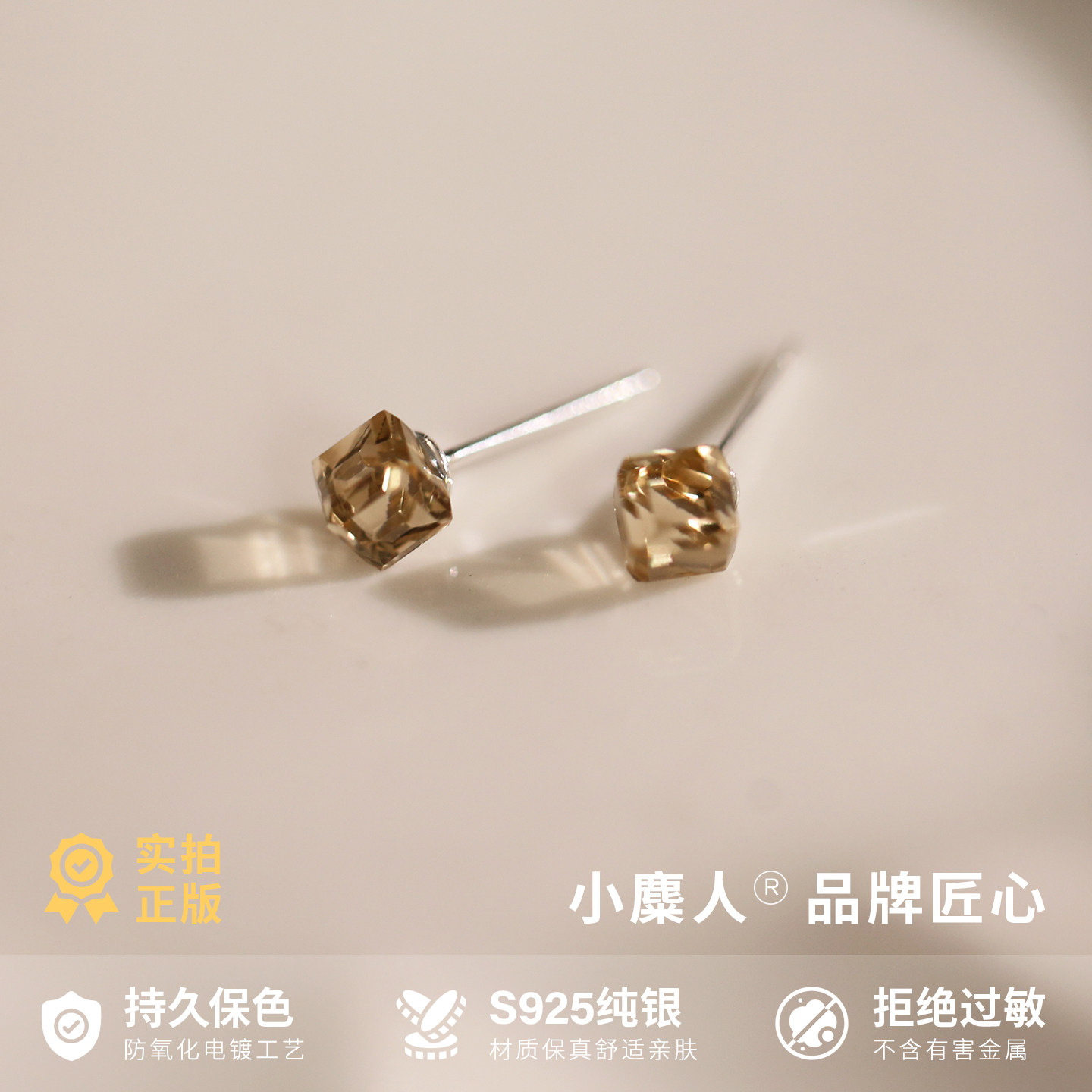 小麋人925气质茶色方糖方块水晶纯银耳钉睡觉不用摘耳环ins日韩女