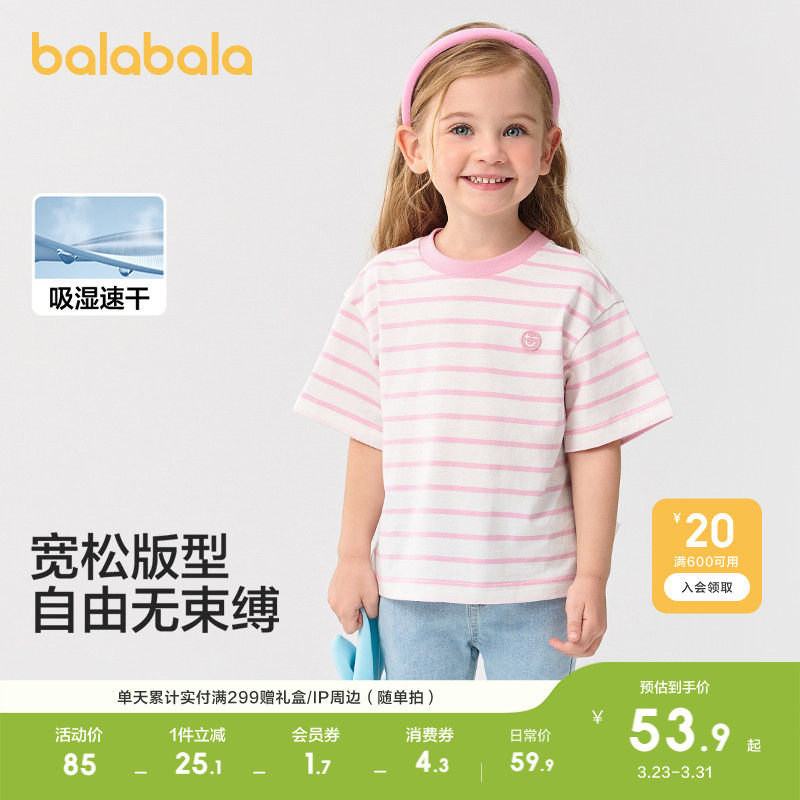 巴拉巴拉童装儿童短袖T恤轻薄新款男童女童春夏装吸湿速干亲子潮