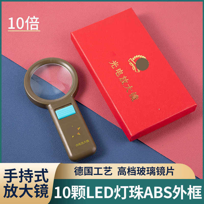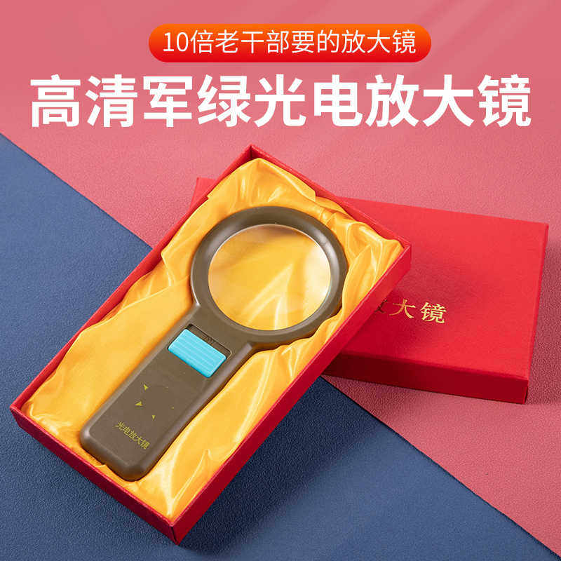 10倍干部军绿光电带灯手持式放大镜长辈礼物老人读书看报维修