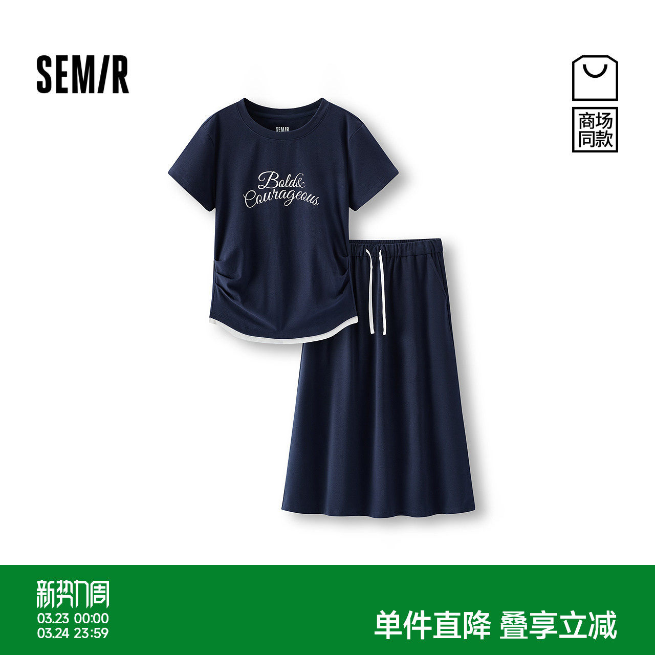 商场同款|森马套装女夏字母短款T恤长裙2026新款小心机休闲两件套