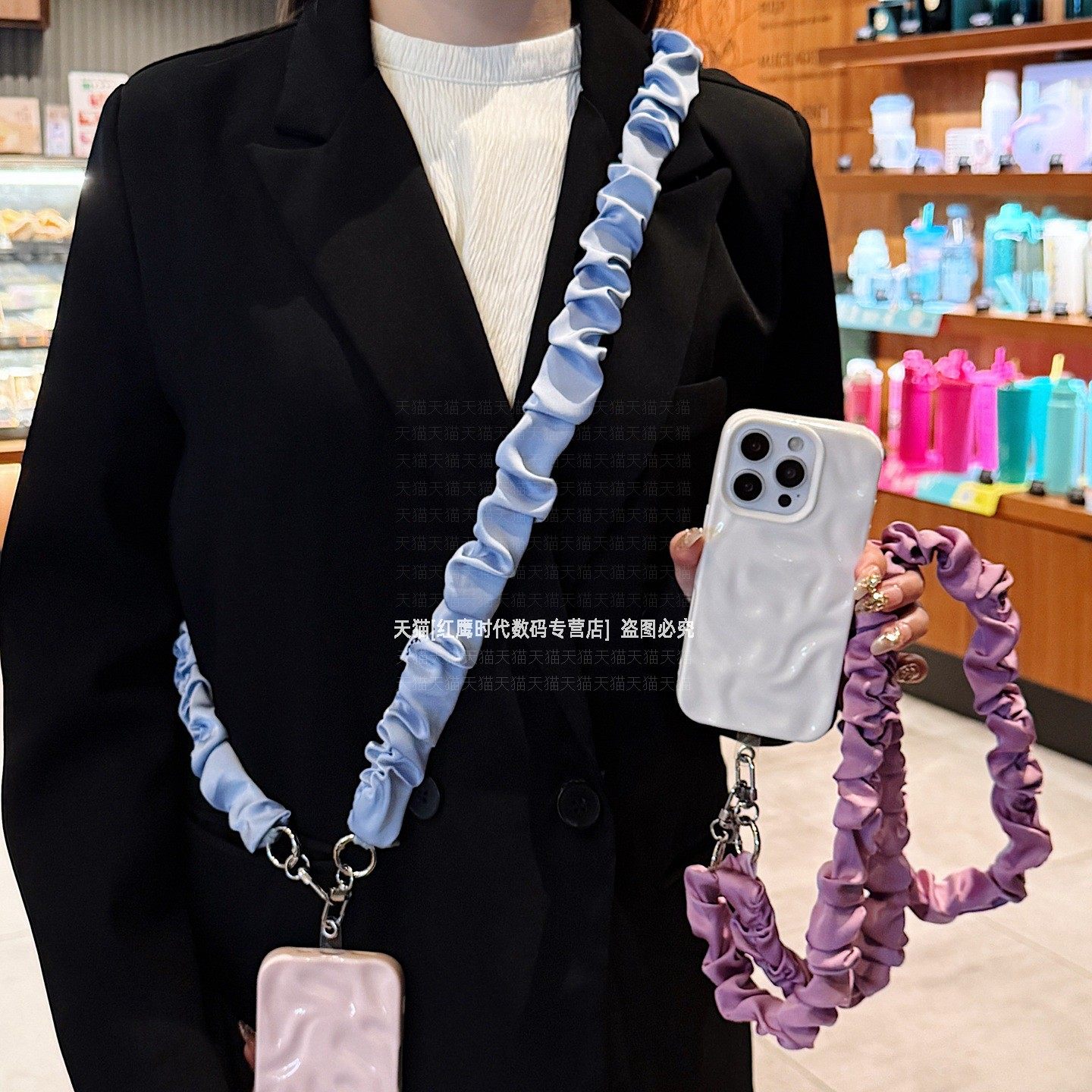 褶皱丝巾手机斜挎防丢挂绳垫片款时尚包包替换带子可背长绳小众高级感肩带大肠背带发圈挂链相机防摔吊绳挂脖