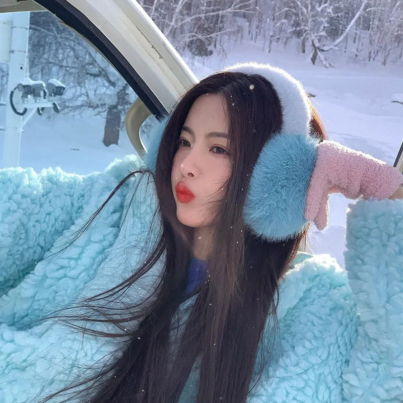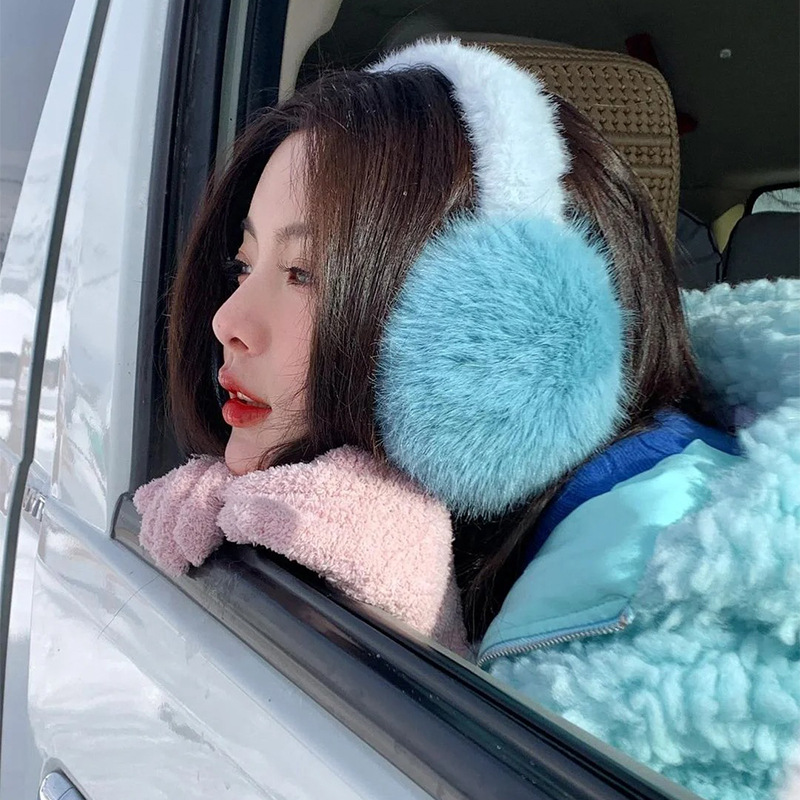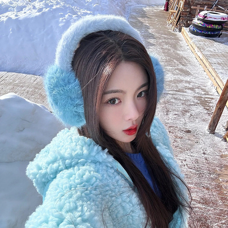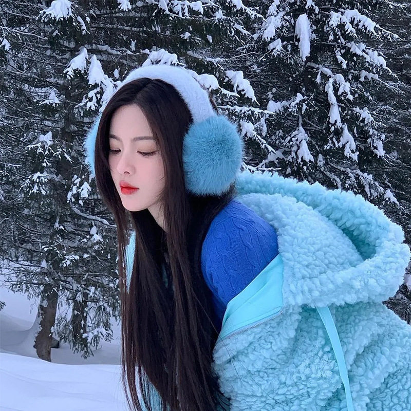杨超越同款蓝色仿兔毛毛绒耳罩保暖防冻护耳冬季雪景拍照有氛围