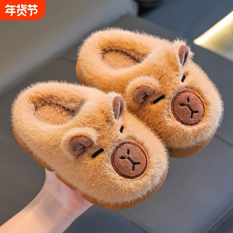 卡皮巴拉儿童棉拖鞋男童卡通可爱防滑室内居家亲子女宝宝毛毛拖冬