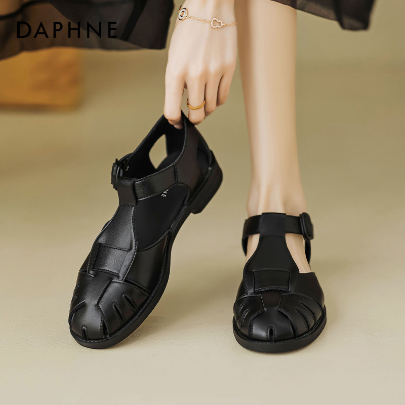 达芙妮罗马凉鞋女2026新款夏季外穿巨好看平底镂空编织休闲凉拖鞋