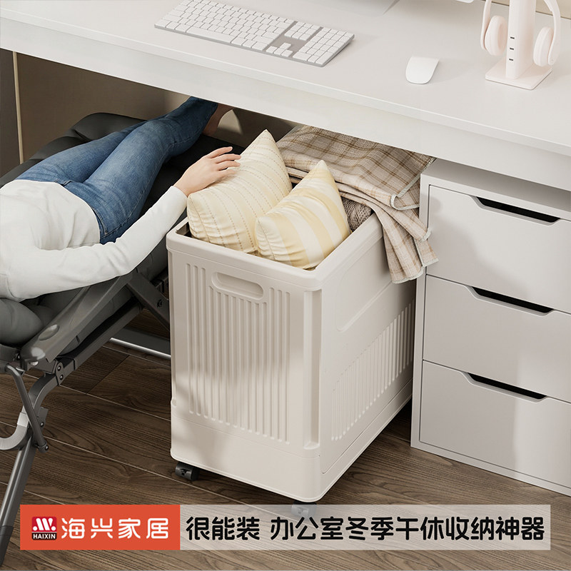 桌下收纳柜办公室工位可移动放包收纳箱收纳筐带轮置物架翻盖带盖