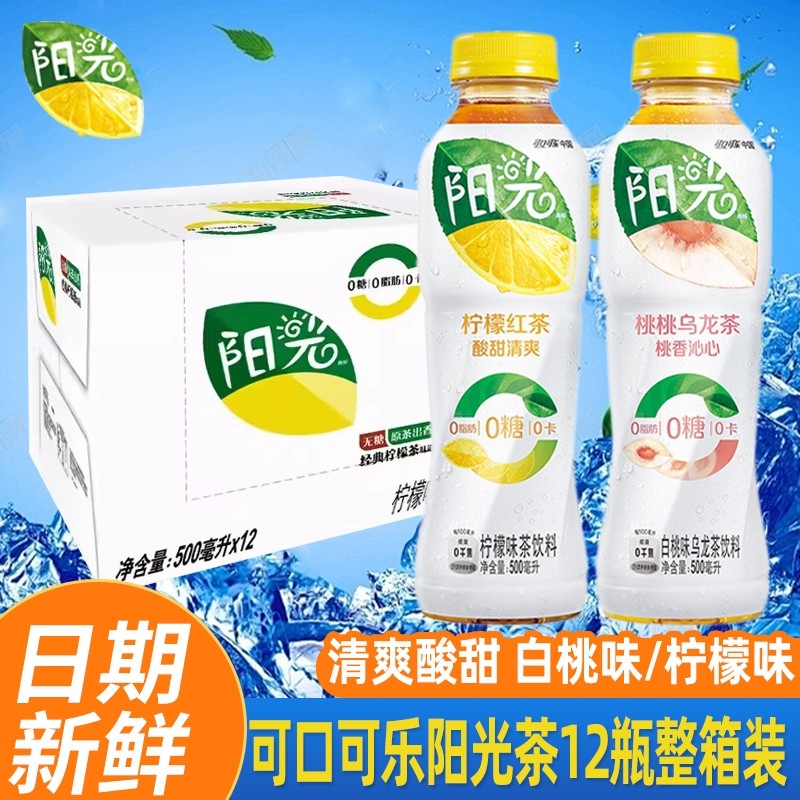 可口可乐阳光茶0糖0脂0卡500ml*12瓶整箱红茶白桃乌龙茶饮料巨峰