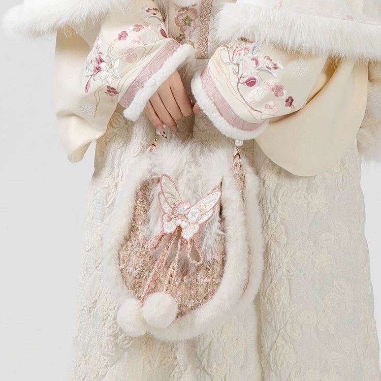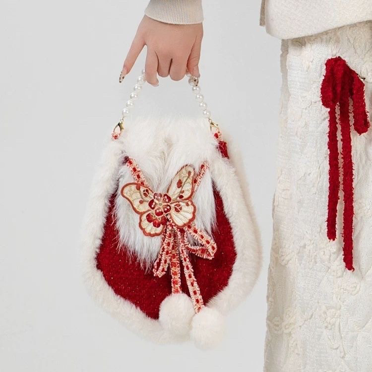 秋冬刺绣货郎包红色马鞍包古风甜美毛绒百搭斜挎单肩手提货郎包女