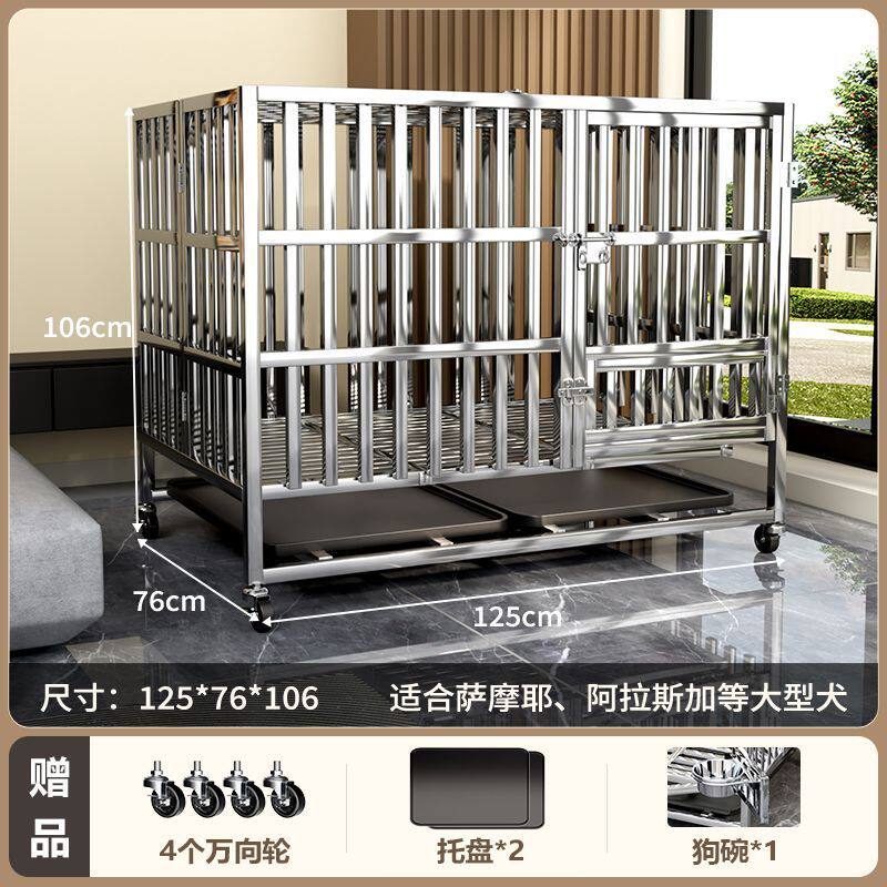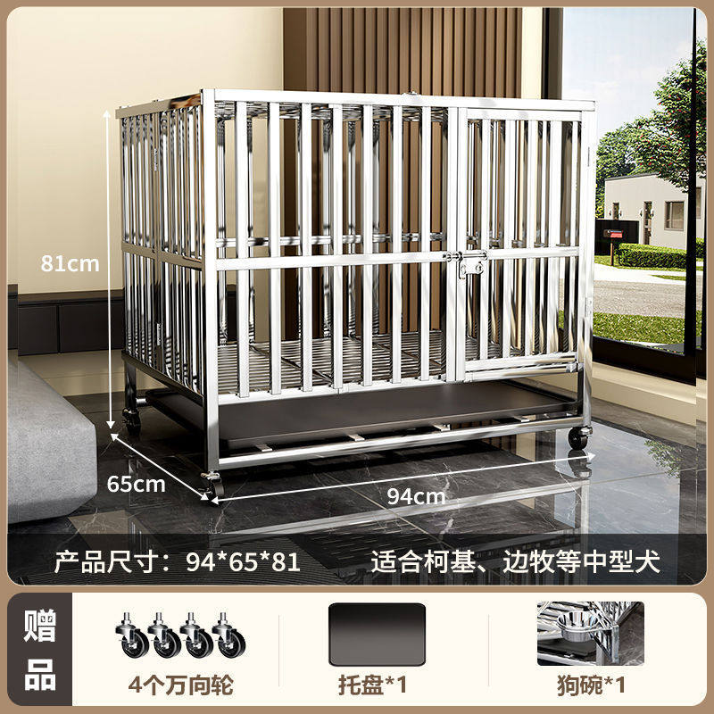 不锈钢狗笼狗笼子小中大型犬室内家用带厕所宠物边牧金毛特大折叠