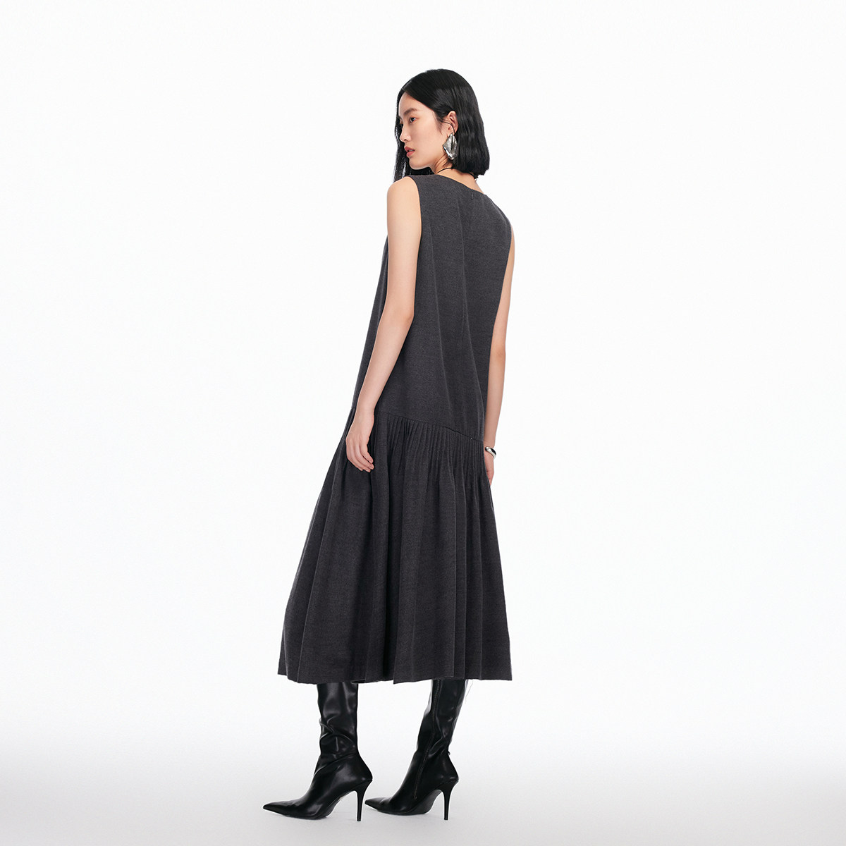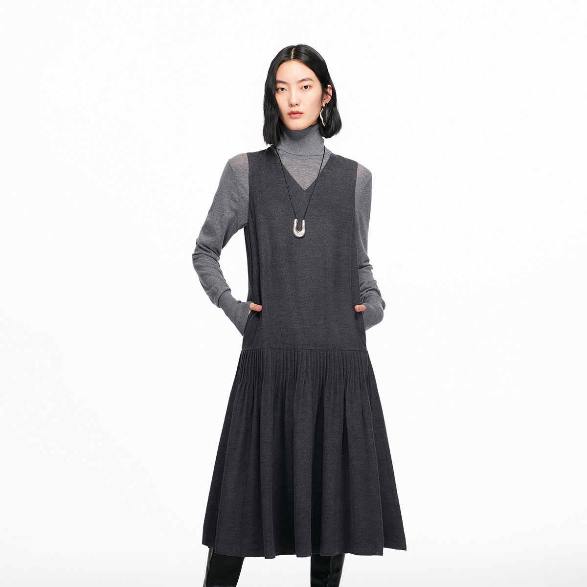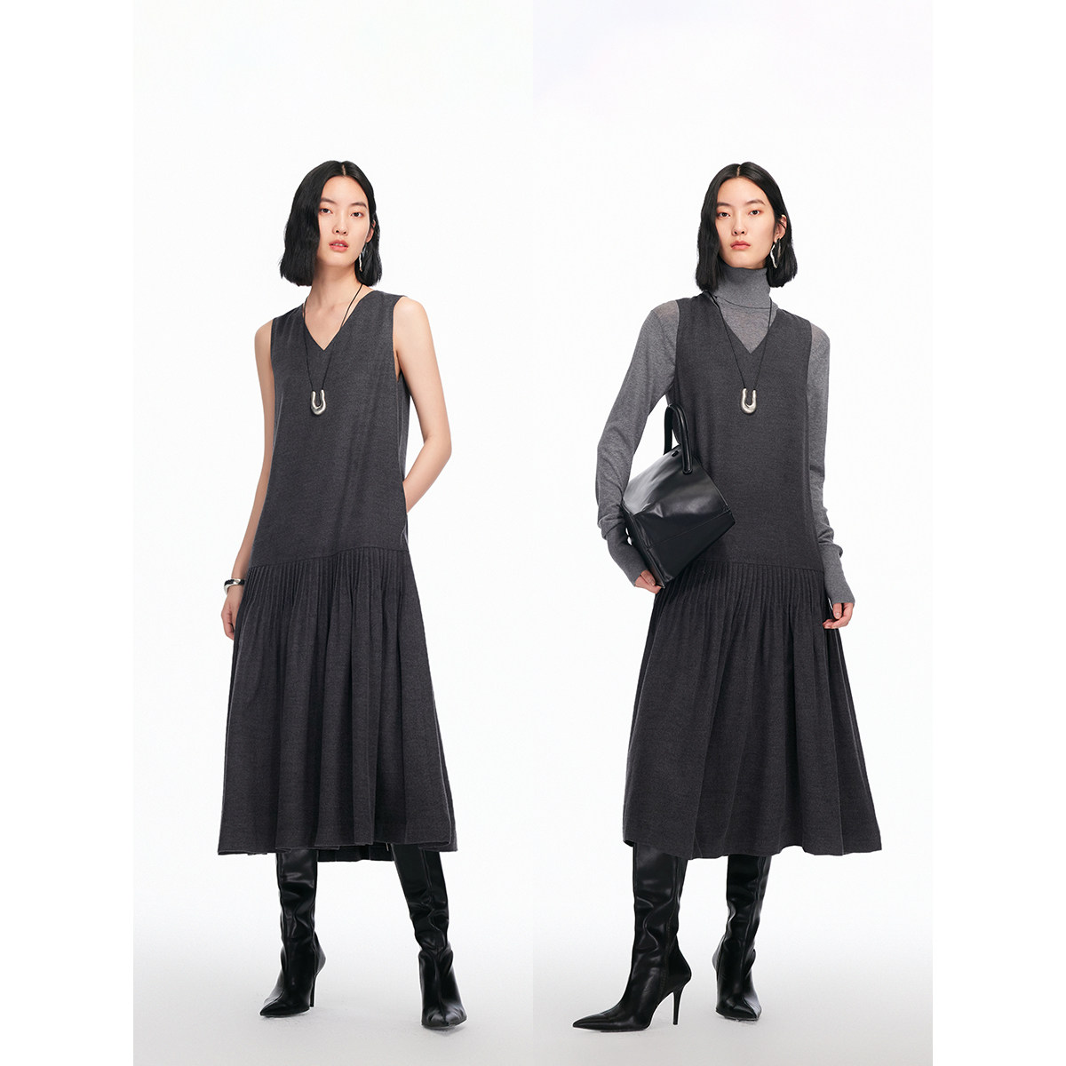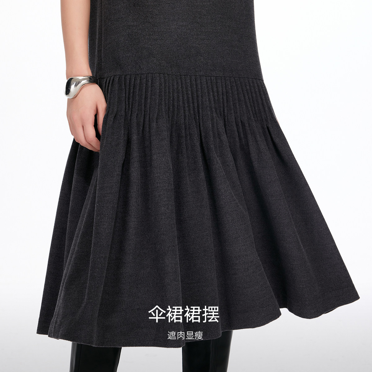 Vero Moda连衣裙女2025冬季新款含绵羊毛V领伞裙遮肉显瘦通勤百搭