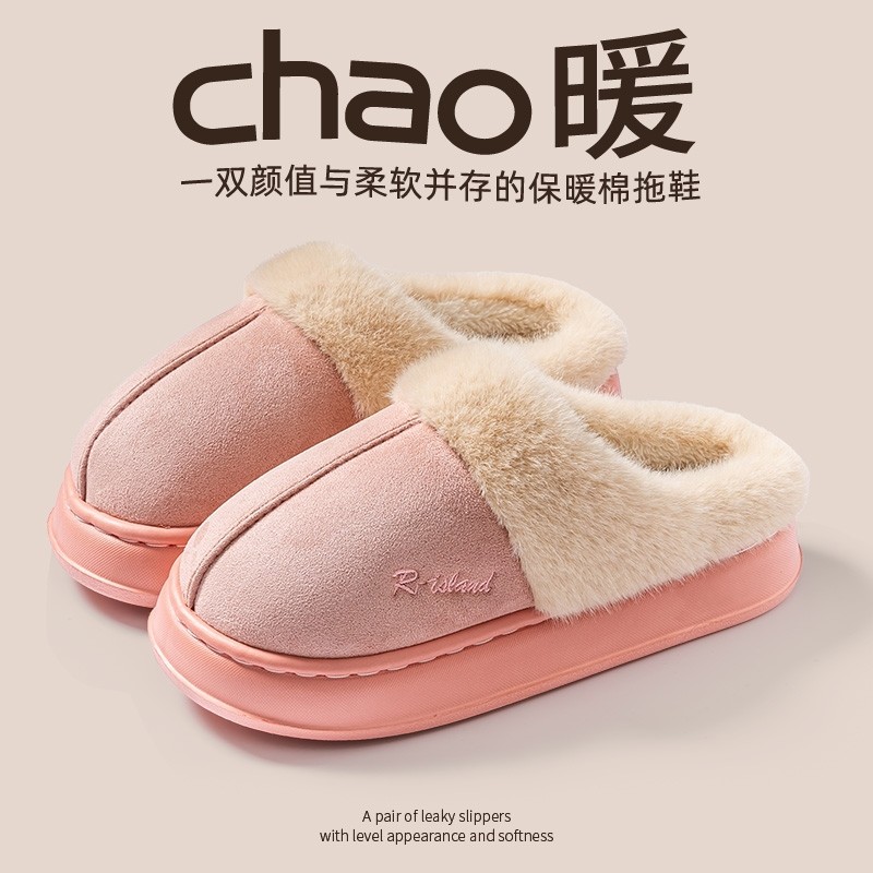 朴西棉拖鞋女士秋冬季厚底简约保暖室内居家用软底防滑情侣棉拖男