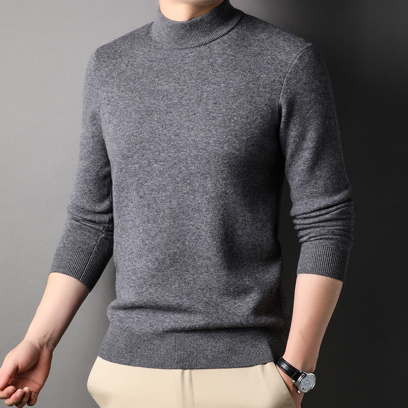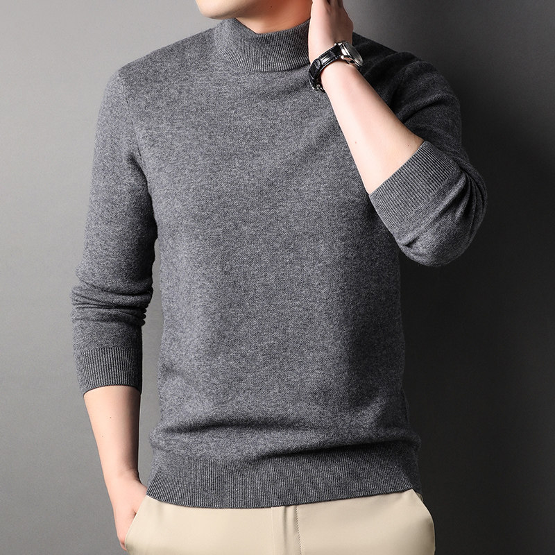 鄂尔多斯市半高领100%纯羊毛衫男休闲中厚保暖毛衣针织打底羊绒衫