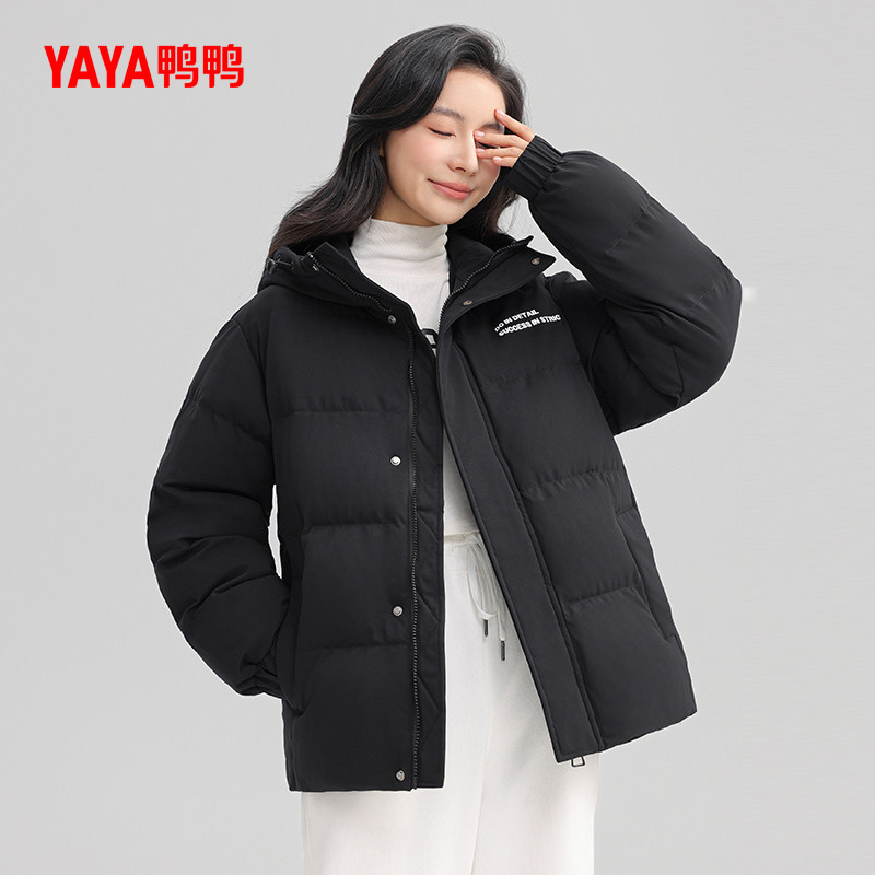 鸭鸭2025秋冬新款立领短款羽绒服小个子女冬多巴胺连帽可拆帽外套