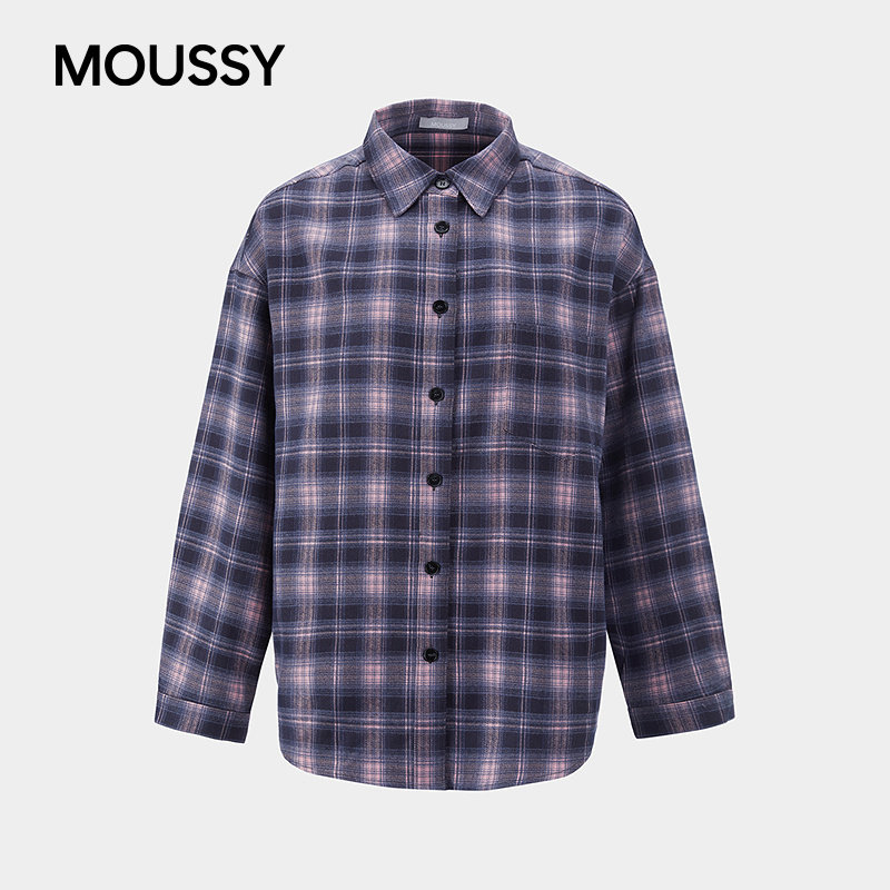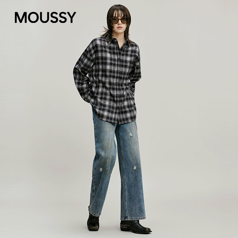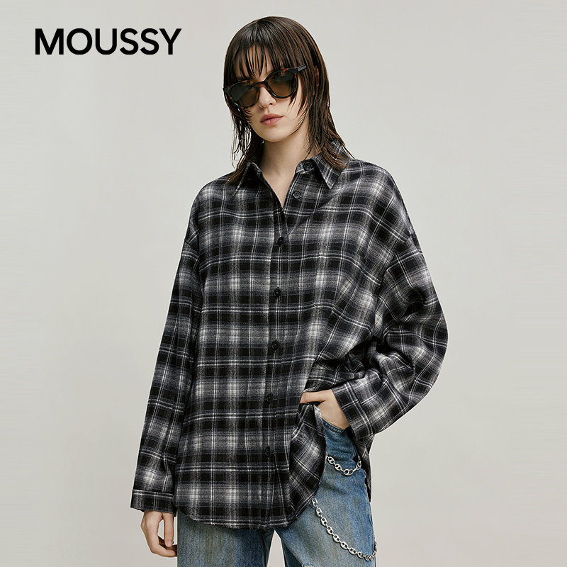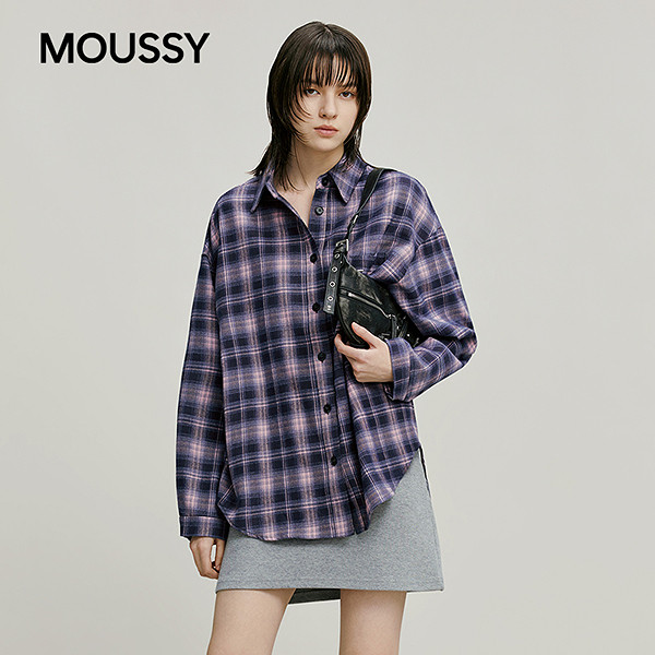 MOUSSY 2026早春新品复古风格纹彩色刺绣字母衬衫女028IAB30-1083