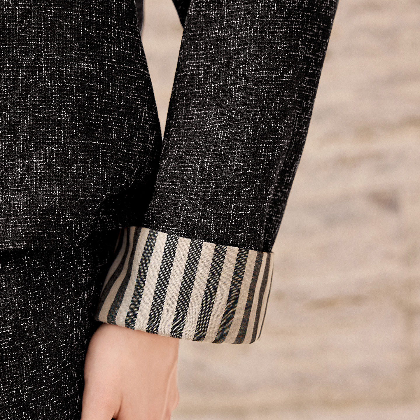 iqcq气球熊千金高级感细闪小香风套装秋冬显瘦黑色外套掐腰小黑裙
