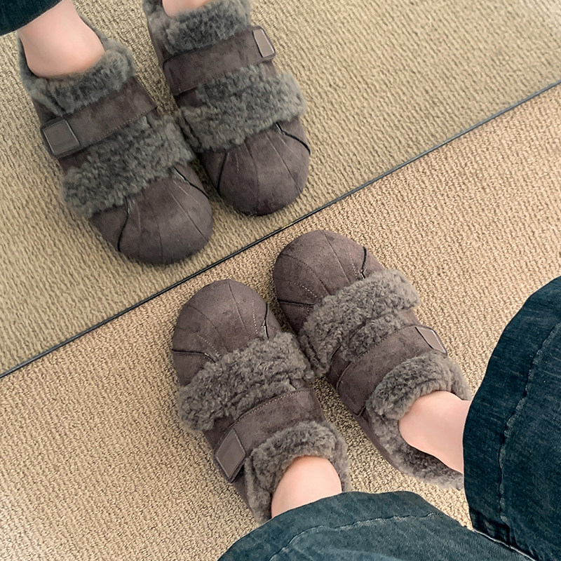 灰色豆豆勃肯鞋女加绒雪地靴2025新款爆款冬季保暖软底毛毛棉鞋子