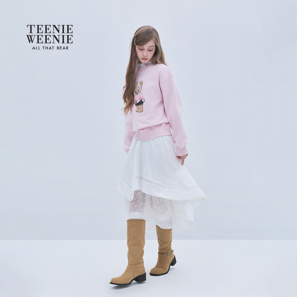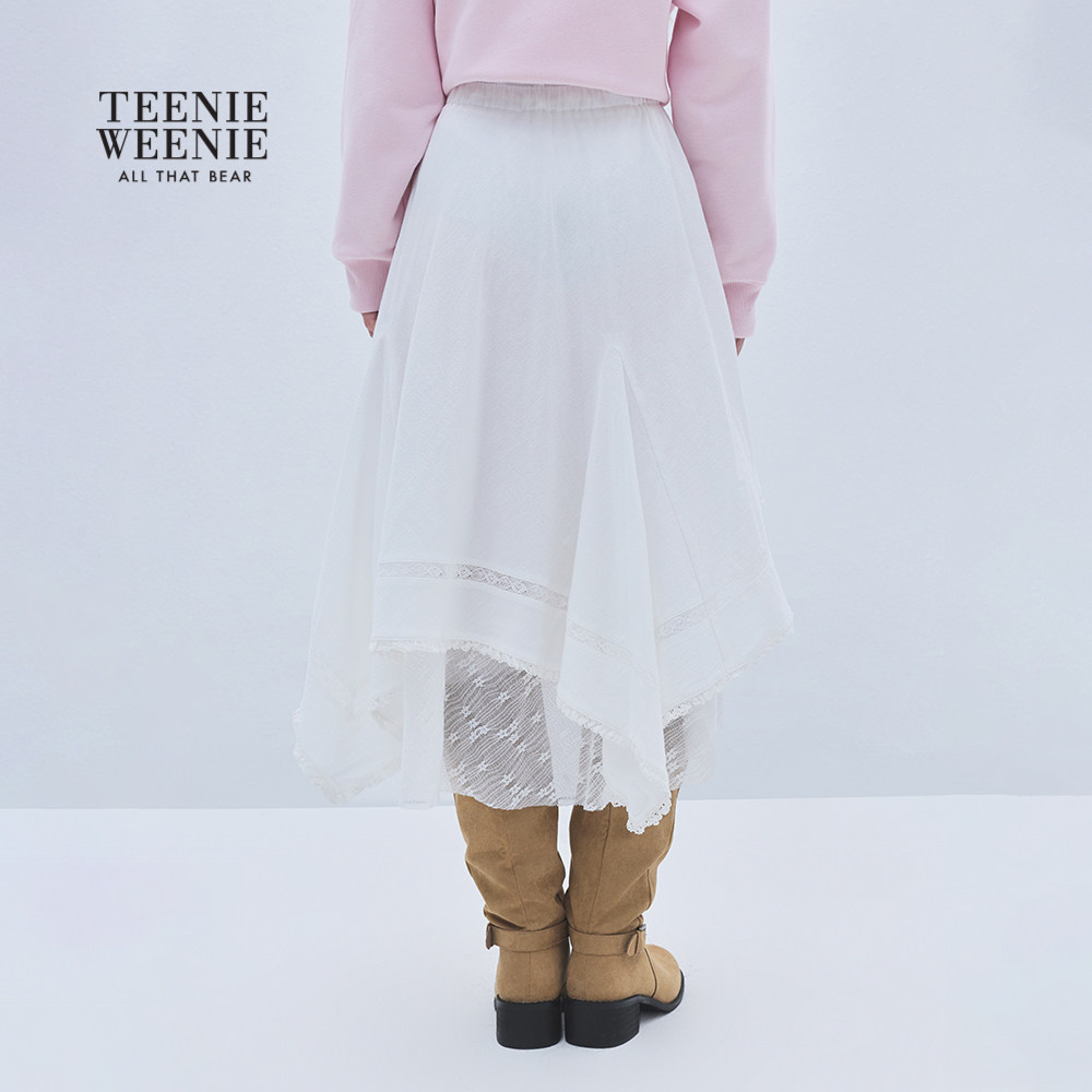 TEENIEWEENIE bearnova25冬季新款女装温柔蕾丝拼接不规则半身裙