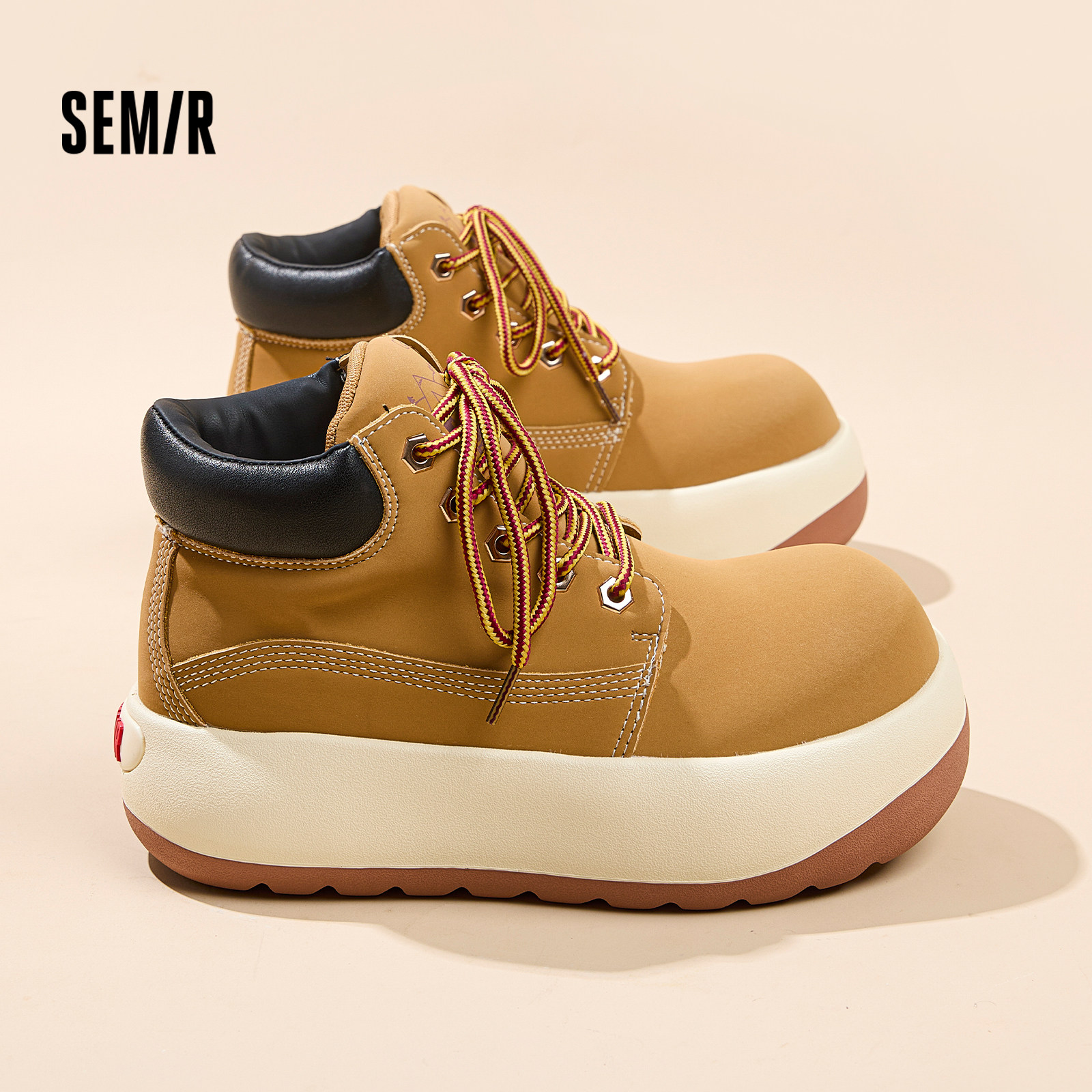 Semir女鞋马丁靴2025秋冬新款丑萌大头大黄靴厚底工装靴百搭短靴