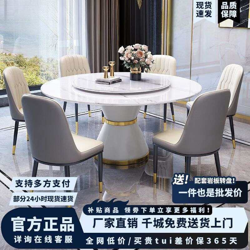 意式岩板圆桌组合现代简约小户型轻奢大理石家用圆形电磁炉餐桌