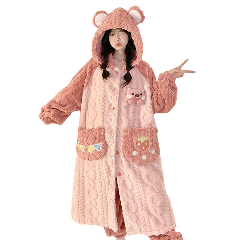 新款珊瑚绒睡衣女秋冬季加厚加绒保暖可爱卡通睡袍法兰绒家居服