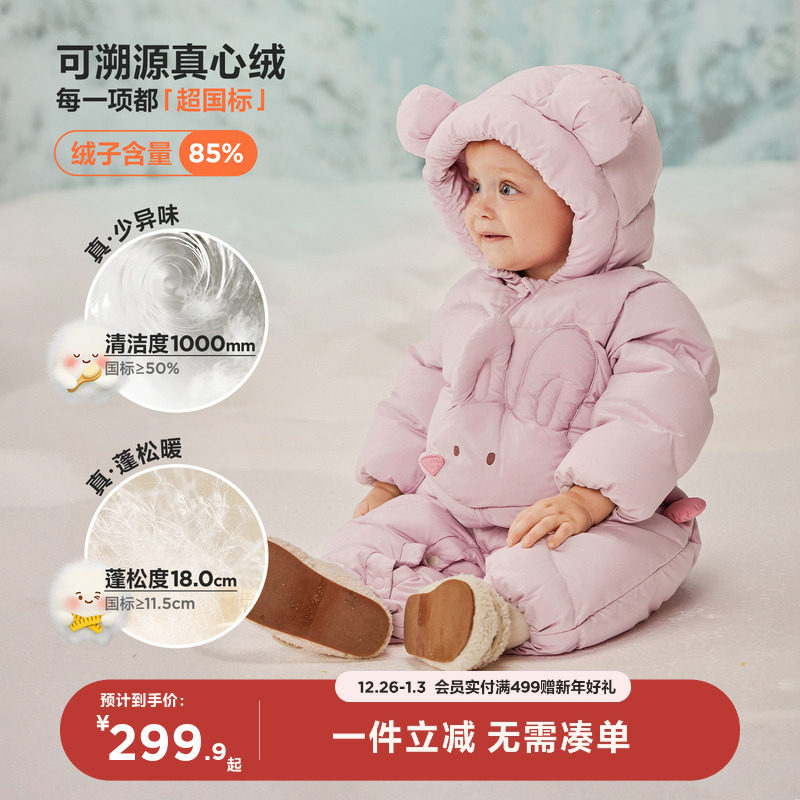 【真心绒】迷你巴拉巴拉男女童羽绒连体衣宝宝三防爬服2025冬新品
