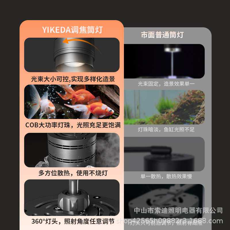 鱼缸LED水草360筒灯增艳促生长专业溪流缸原生全光谱WRGB出苔筒灯