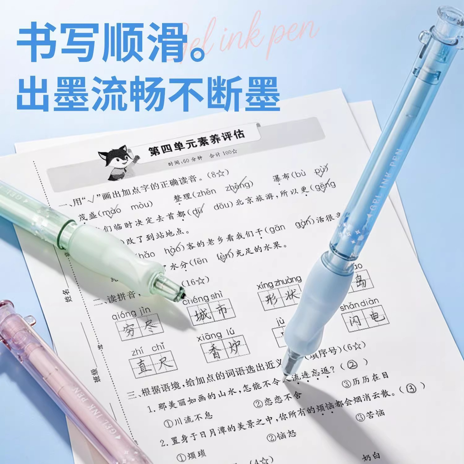 MENIU米扭中性笔听海拾贝小滴笔高颜值大容量学生专用刷题考试笔