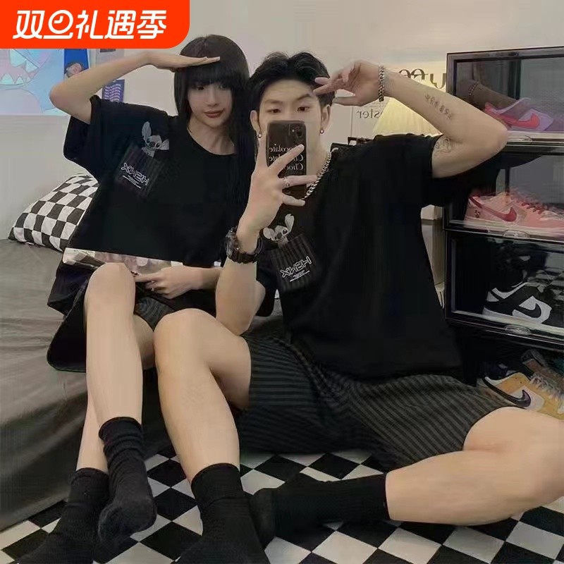 情侣睡衣女春秋夏季2024年新款短袖男士可外穿家居服套装条纹柔软