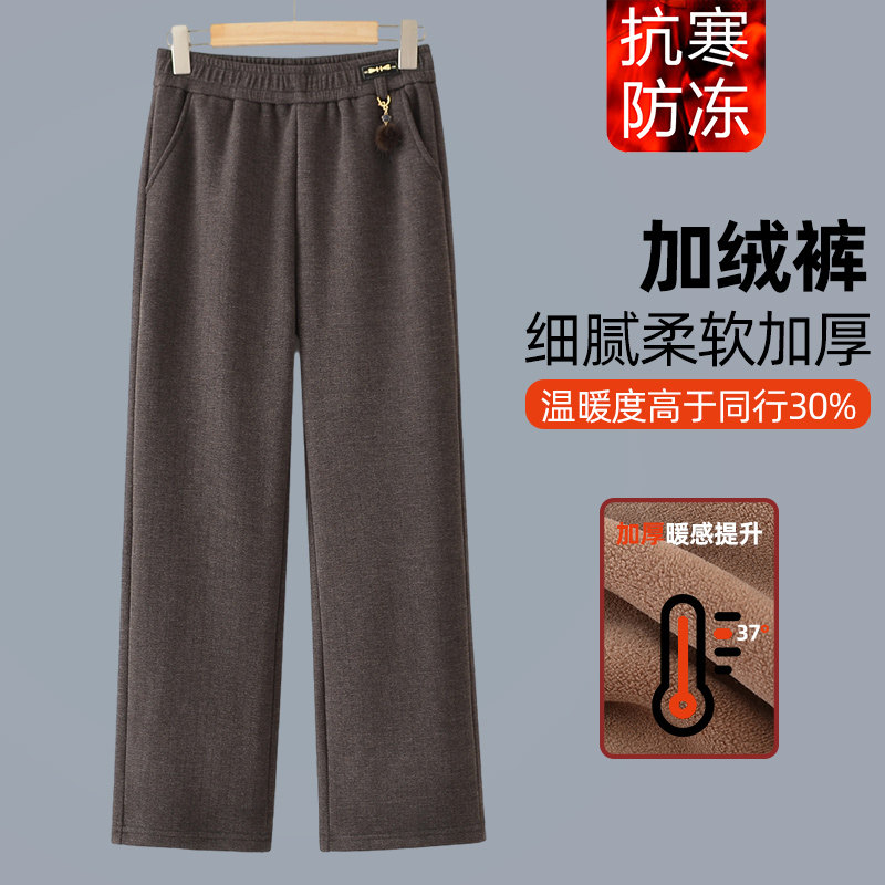 妈妈冬装加绒加厚裤子中年直筒裤中老年女装冬季长裤老年人流行