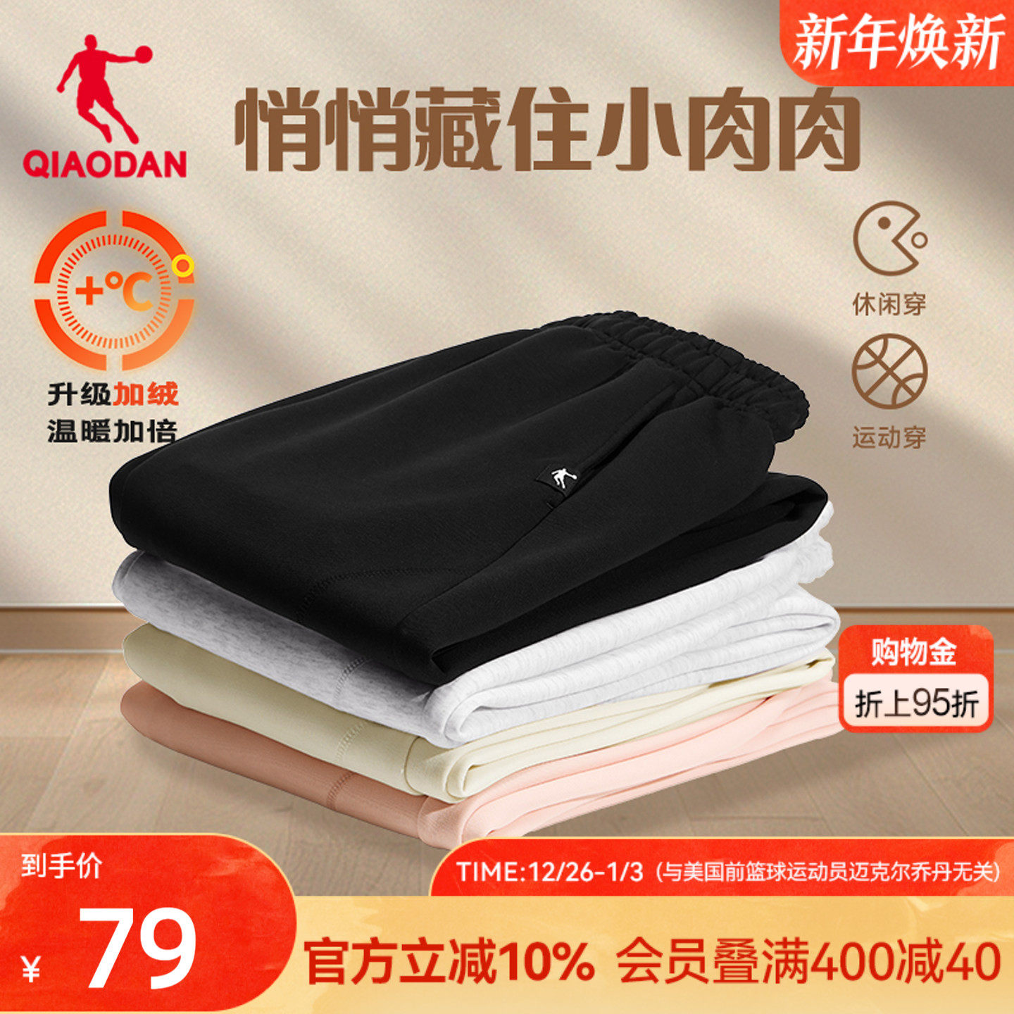 乔丹女生运动加厚长裤休闲天丝舒适2025冬季新款百搭健身居家裤子