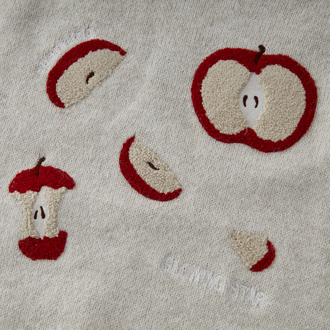 设计感苹果毛巾绣 弱化肩线插肩袖