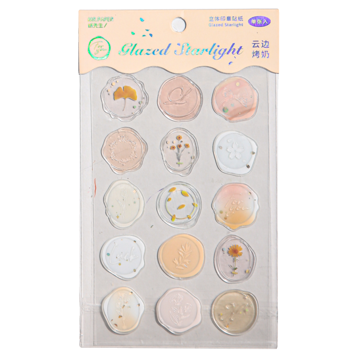 琉璃星光印花彩色火漆印章贴纸信封封口透明立体装饰素材滴胶贴画