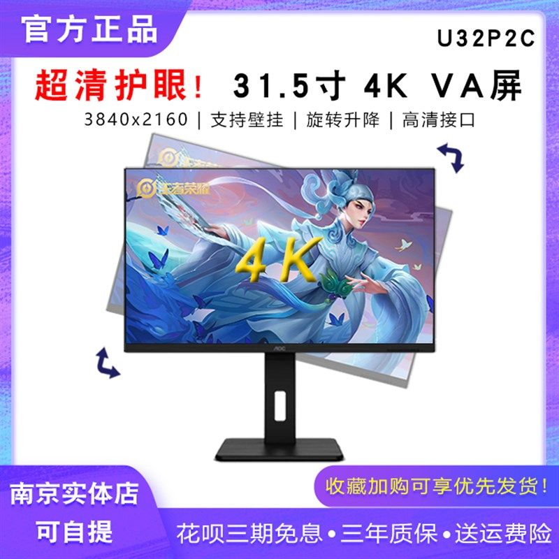O Q Q 升降旋转充电台式家用液晶显示器