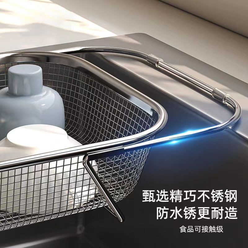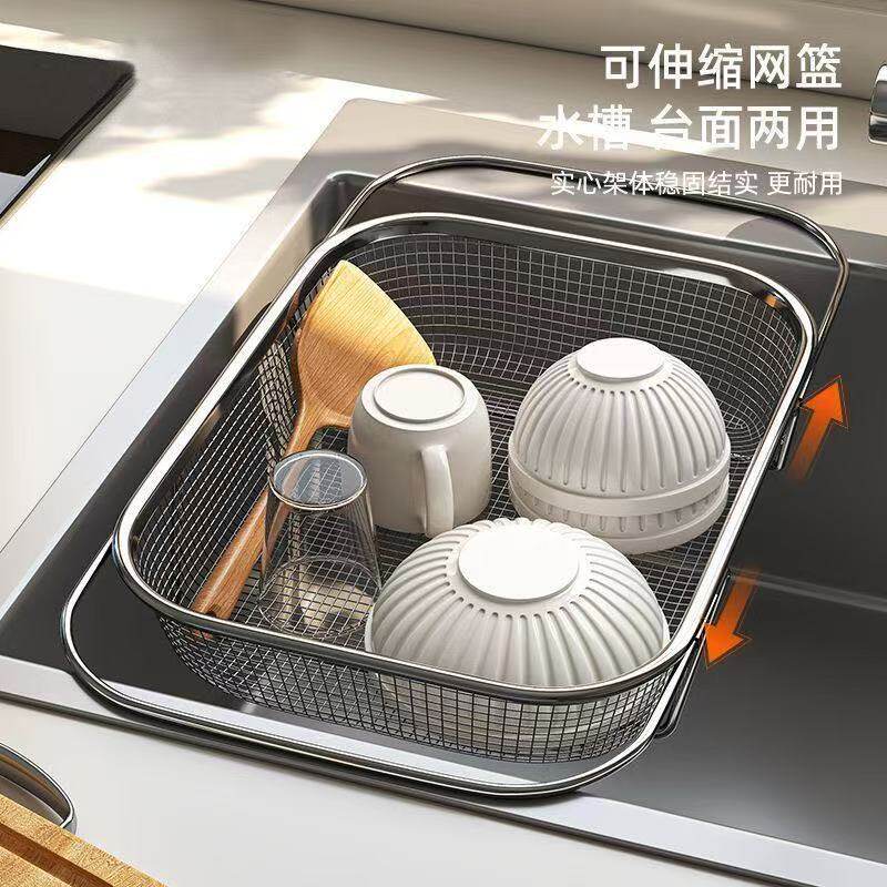 加厚水槽不锈钢沥水篮洗碗池厨房可伸缩置物架洗菜盆碗碟收纳架