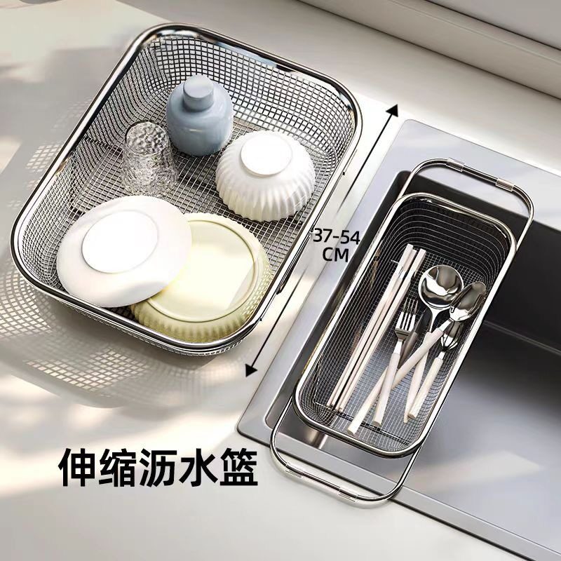 可伸缩沥水篮洗菜盆碗架厨房家用水果盘洗碗池水槽置物架滤水篮子